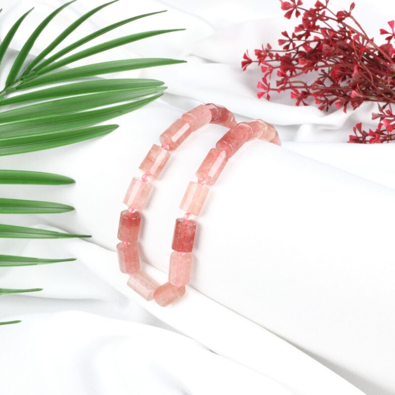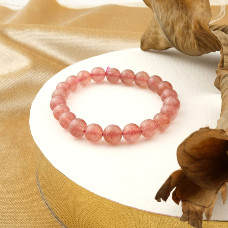 Günlük kullanımda bir çilek kuvars kolye veya bileklik, zarif ve enerjik bir stil tamamlayıcısı olarak tercih edilir.