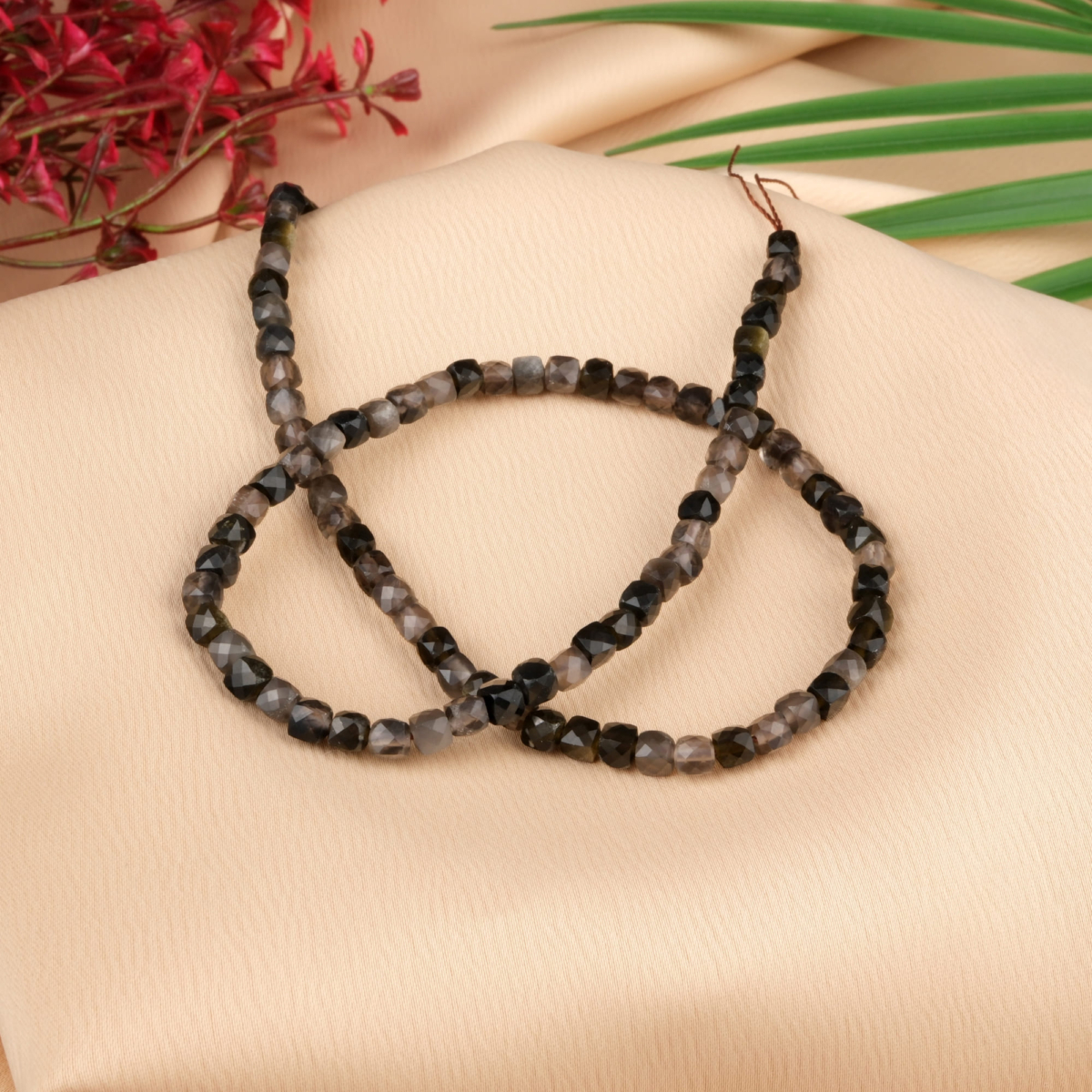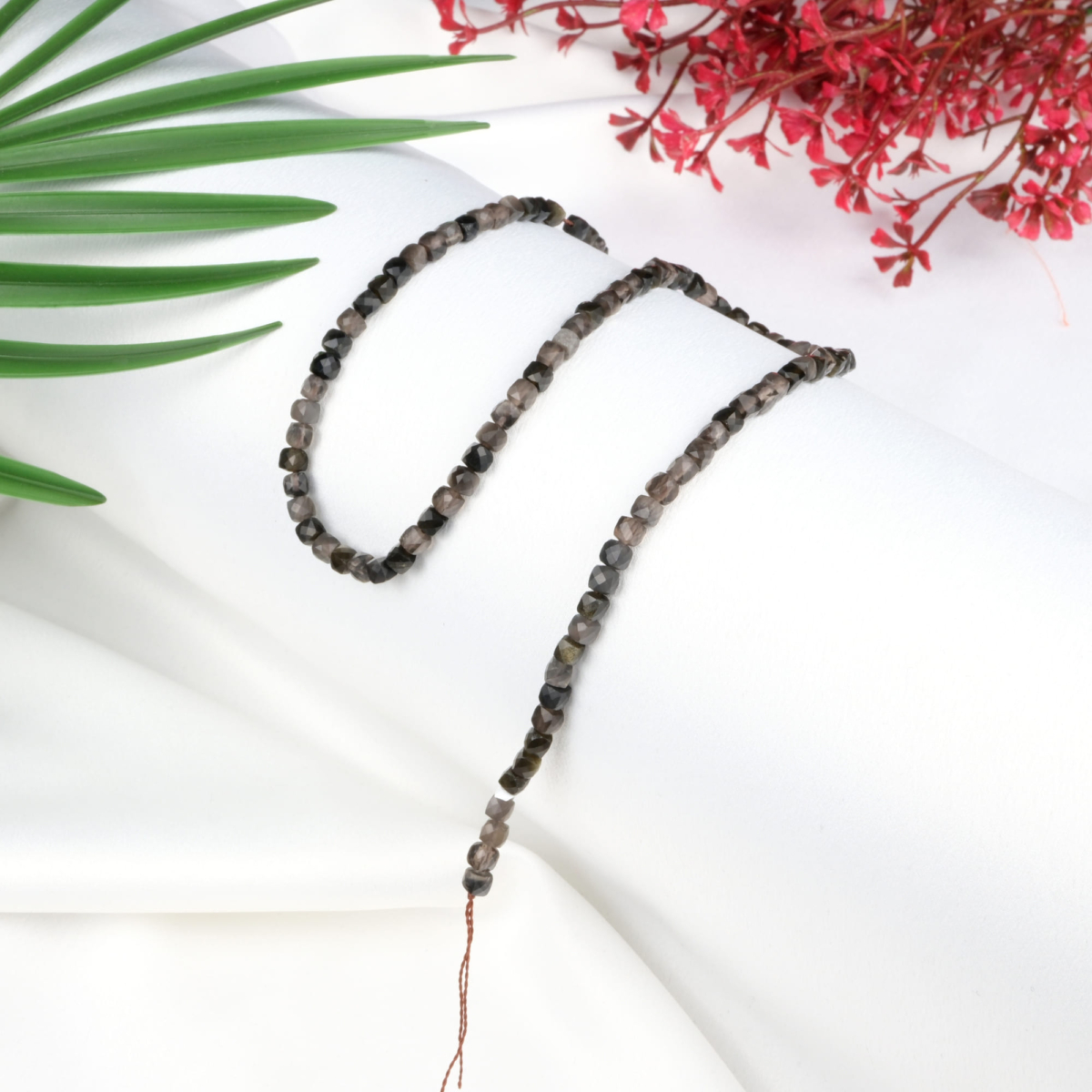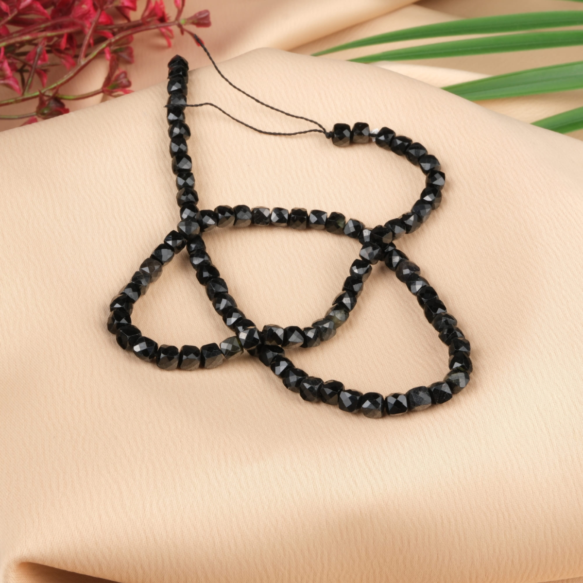 Küp Kesimli Obsidyen Doğal Taş Dizi (4mm)