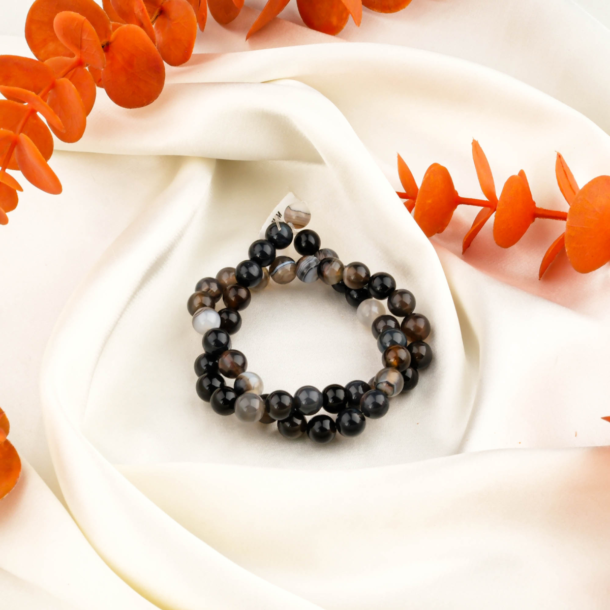 Siyah Gri Madagaskar Akik Doğal Taş Dizi (8mm)