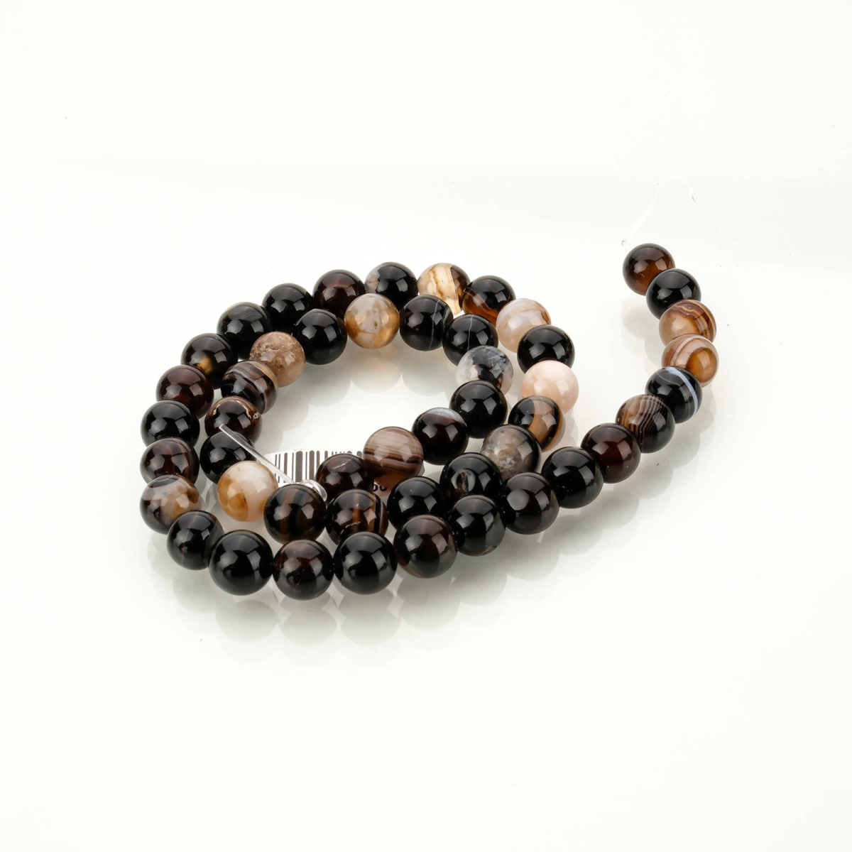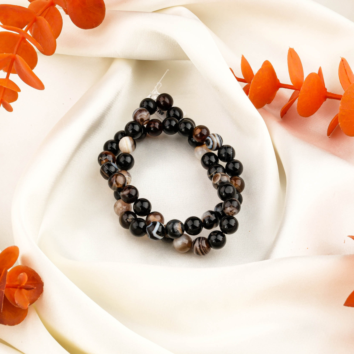 Siyah Beyaz Madagaskar Akik Doğal Taş Dizi (8mm)
