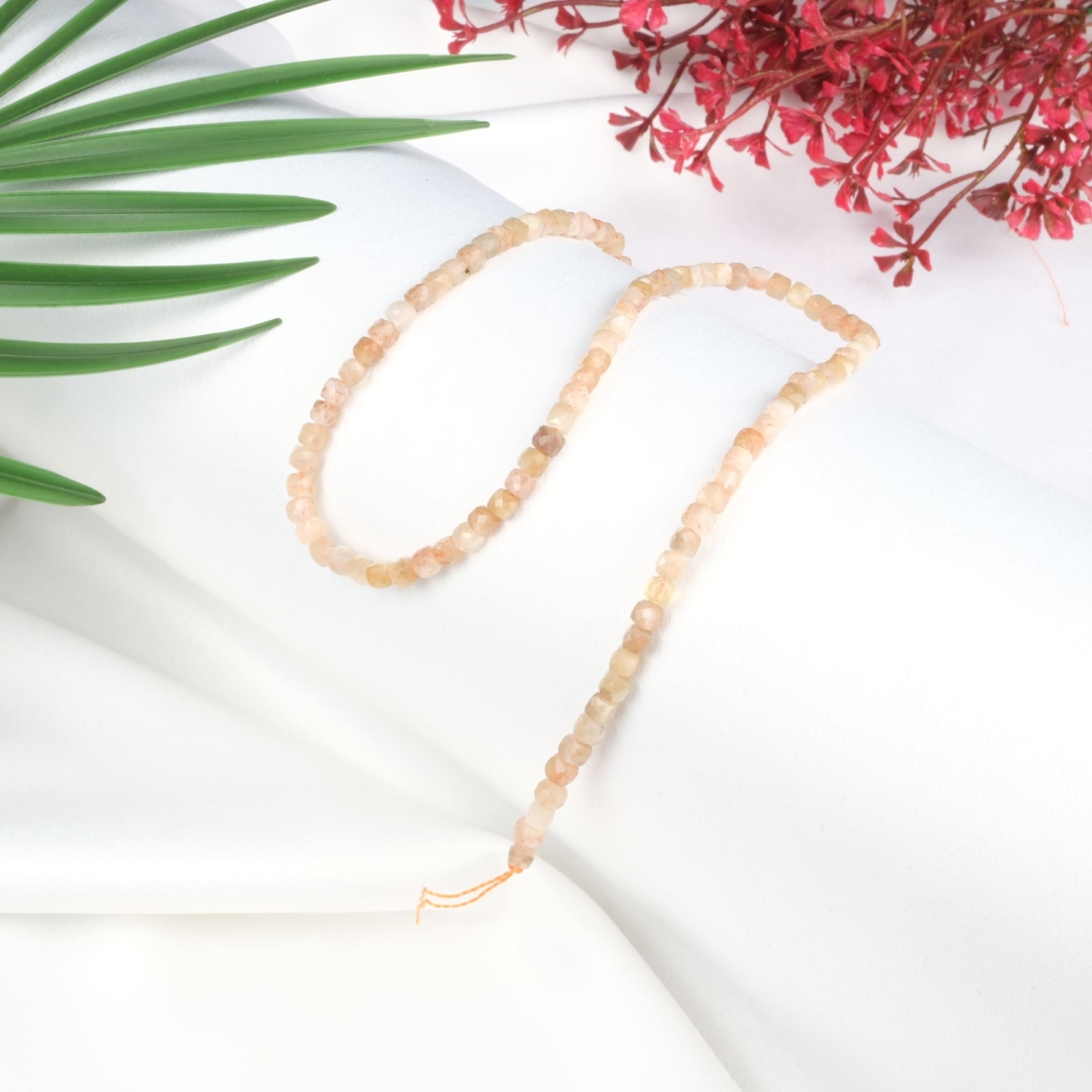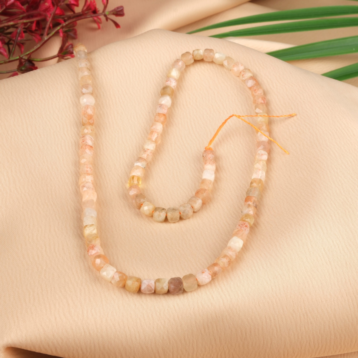 Kesimli Güneş Taşı doğal taş dizi 4mm – turuncu ve altın yansımalarıyla canlılık, özgüven ve neşe enerjisi yayan toptan doğal taş dizi.