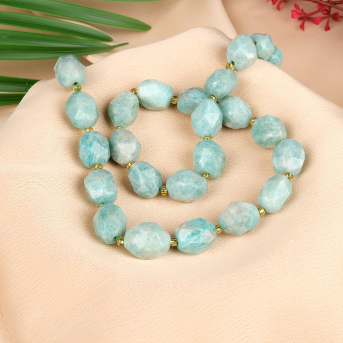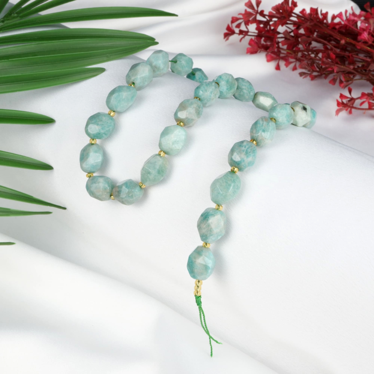 Kesimli Amazonit doğal taş dizi 4mm – sakinlik, iç huzur ve iletişim enerjisini destekleyen toptan doğal taş dizi
