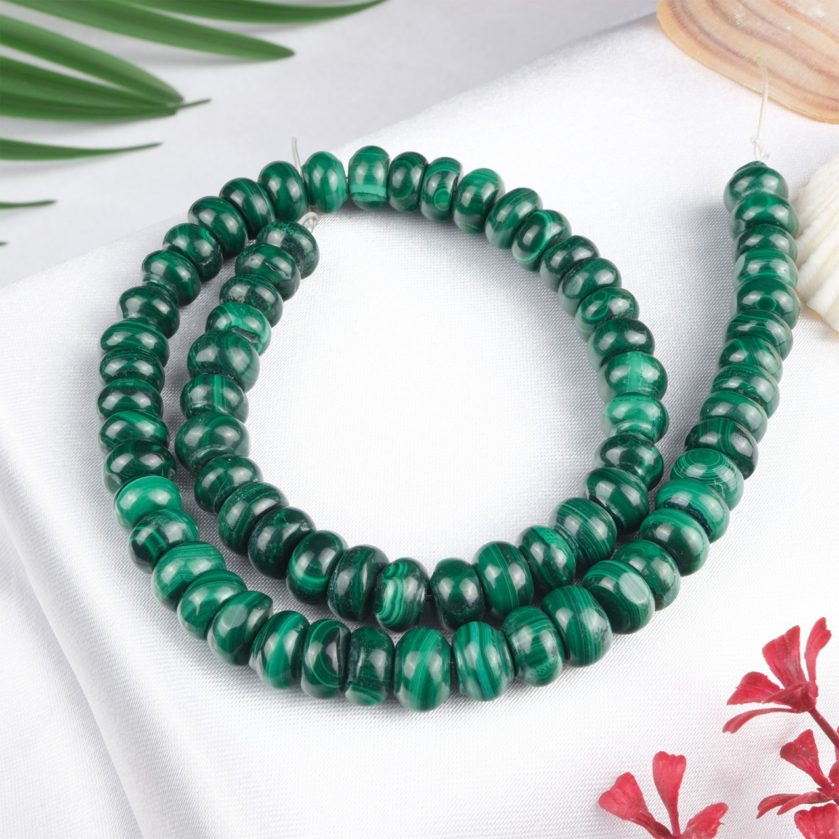 Rondel Malahit doğal taş dizi – güçlü koruma enerjisiyle negatifliği dönüştüren, kalp çakrasını dengeleyen toptan doğal taş dizi