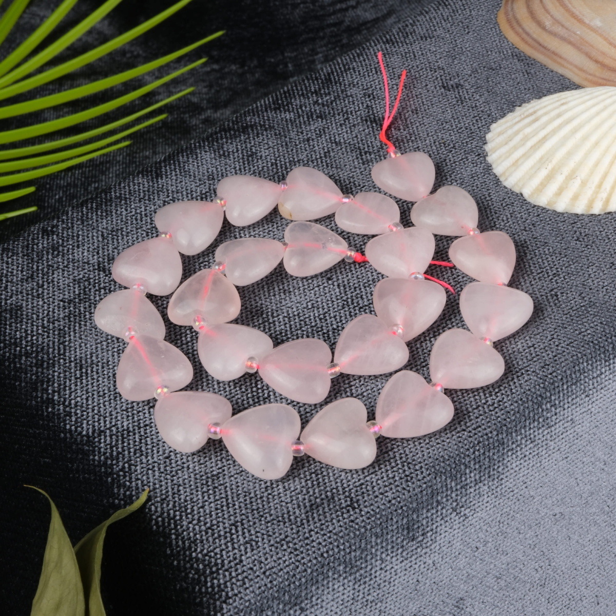 Pembe Kuvars Kalp Doğal Taş Dizi (15mm)