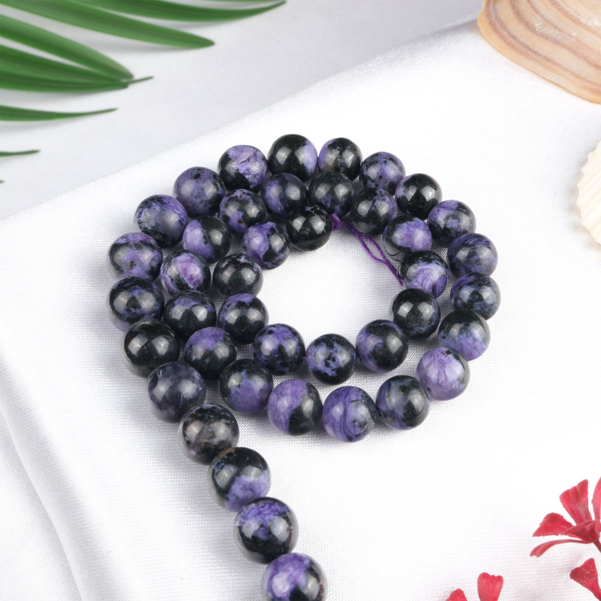 Lepidolit doğal taş dizi 9 mm – mor ve lavanta tonlarıyla stres azaltan, denge ve huzur enerjisi sağlayan toptan doğal taş dizi
