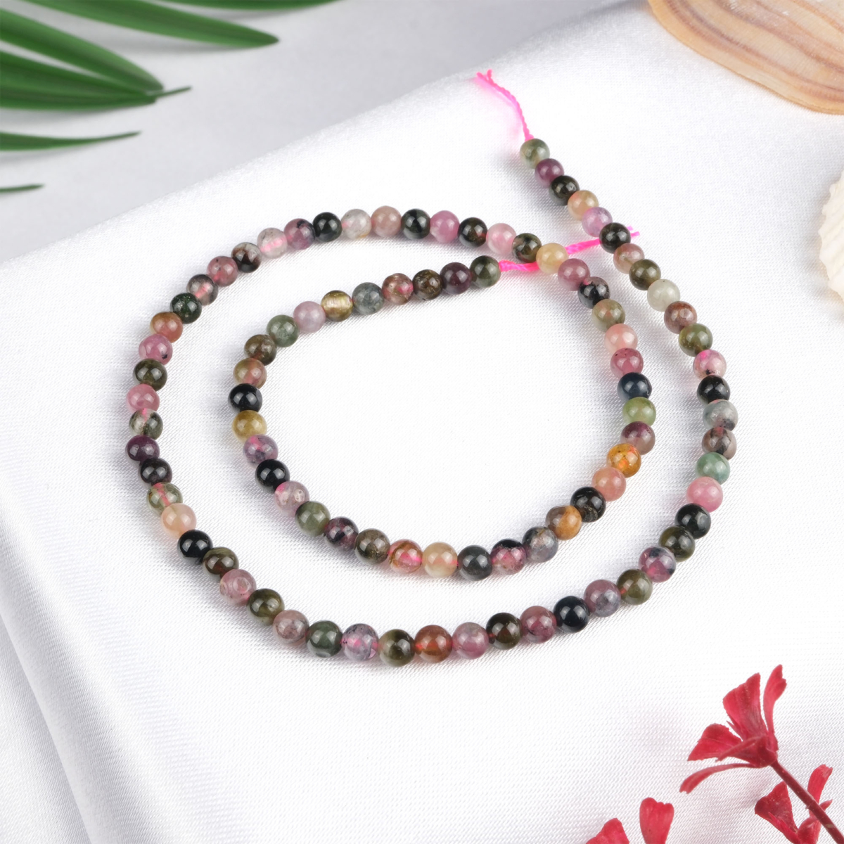Turmalin doğal taş dizi 8 mm – çok renkli yapısıyla koruma, denge ve enerji temizliği sağlayan toptan doğal taş dizi