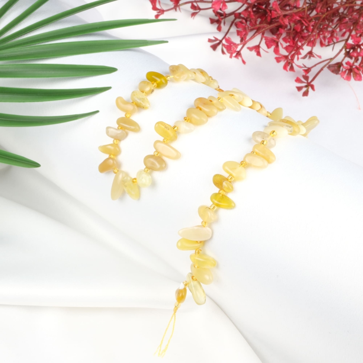 Sarı Opal Doğal Taş Arası Boncuklu Çubuk Dizi