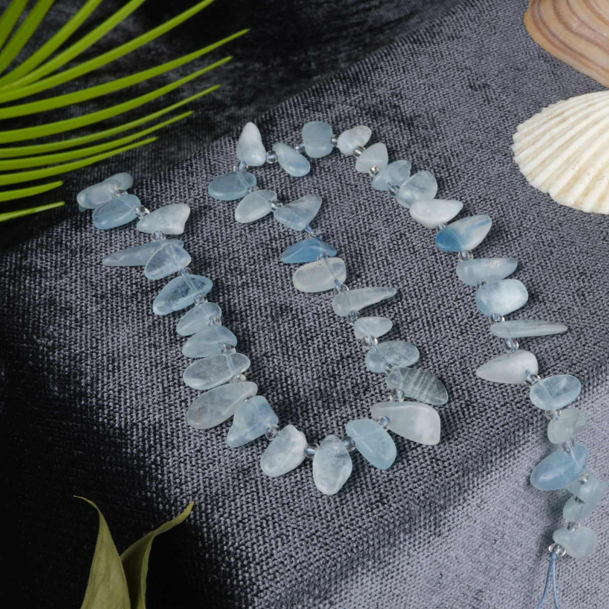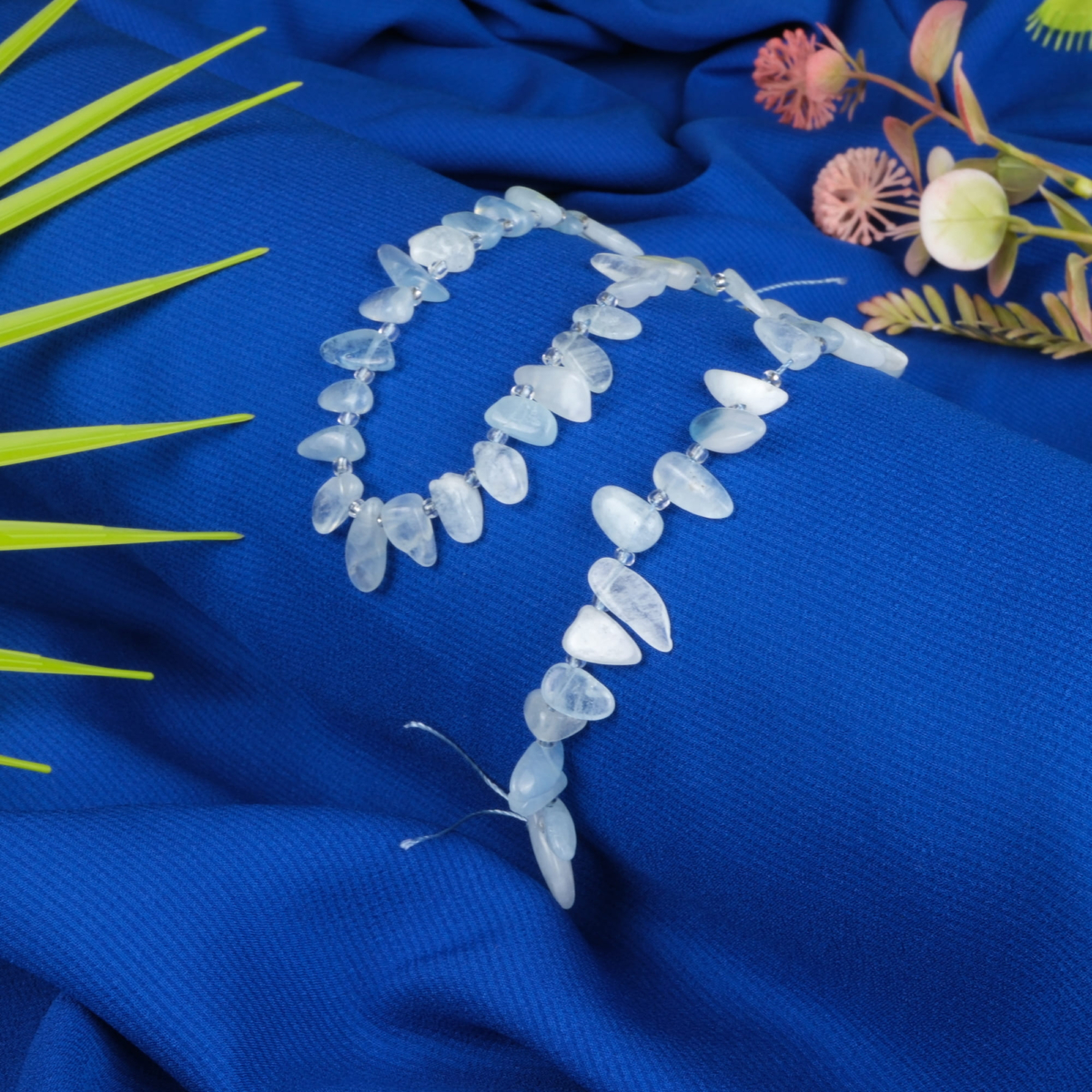 Üçgen kesim Karma Akuamarin doğal taş dizi – huzur, iletişim ve berraklık enerjisini güçlendiren toptan doğal taş dizi