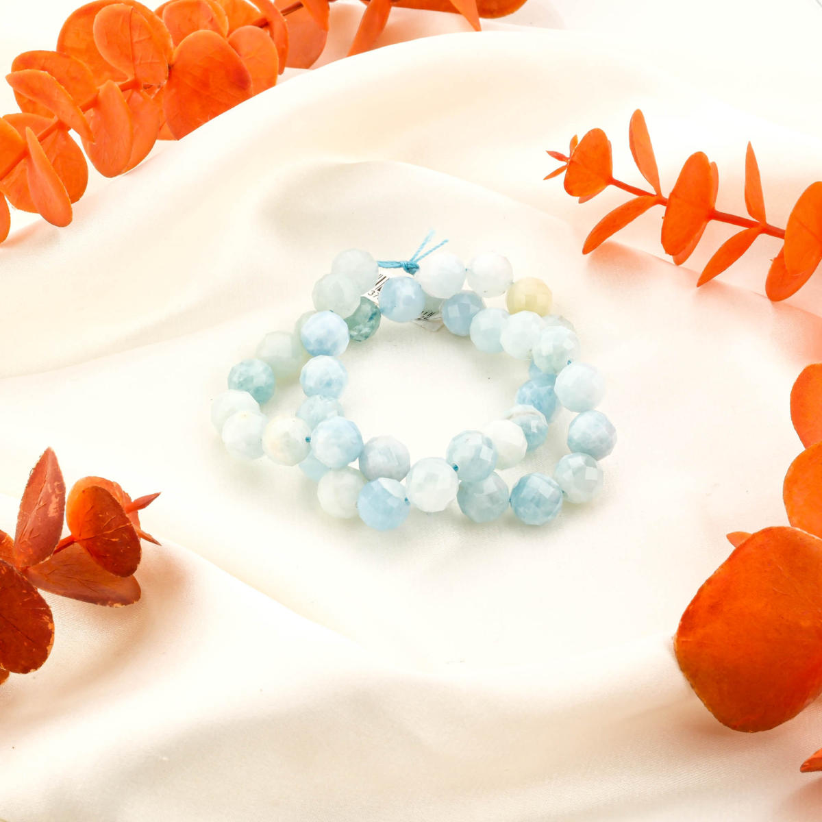 Düğümlü Küp Akuamarin doğal taş dizi – denizin huzurunu ve gökyüzünün ferahlığını taşıyan, arası düğümlü tasarımıyla zarif ve toptan doğal taş dizi