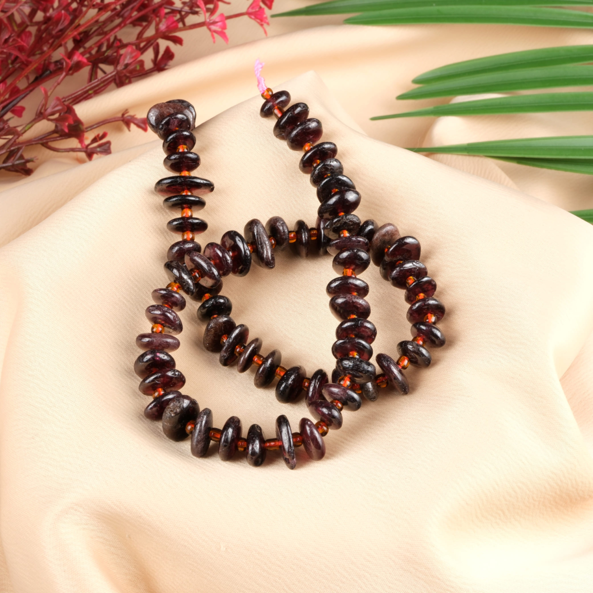 Granat Doğal Taş Amorf Rondel Kesim Dizi