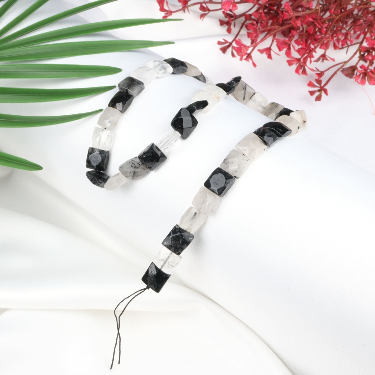 Siyah Rutil Kuvars Doğal Taş Amorf Rondel Kesim Dizi
