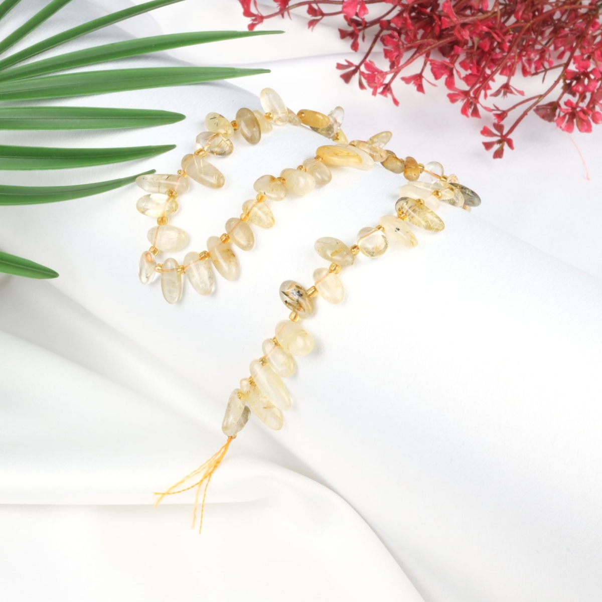 Rutil Kuvars toptan doğal taş dizi – içindeki altın iğne desenleriyle enerji, bolluk ve farkındalık sağlayan güçlü şifa taşı.