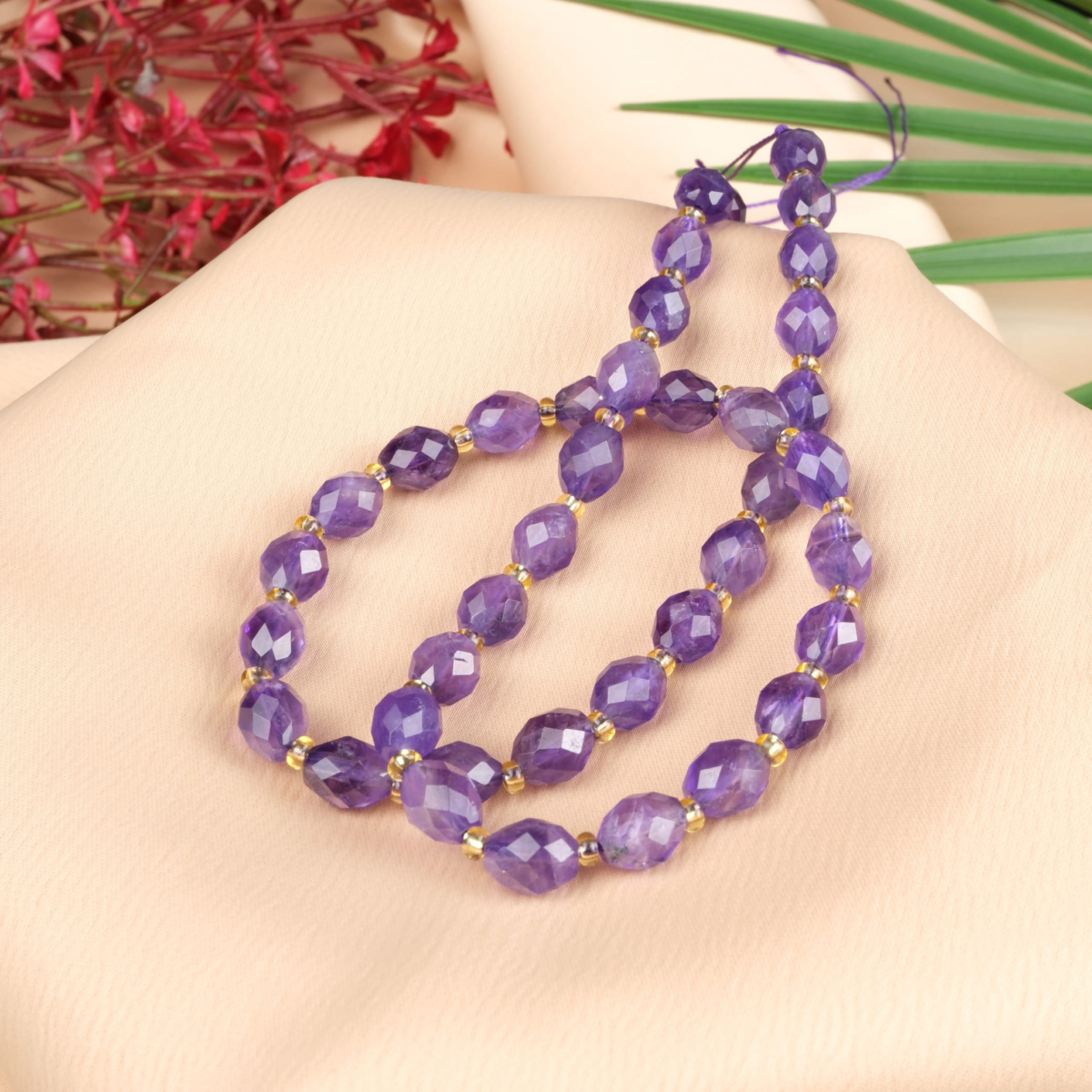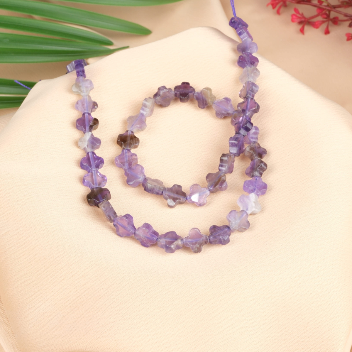 Ametist Doğal Taş Dizi (8mm Yassı Yonca Kesim)