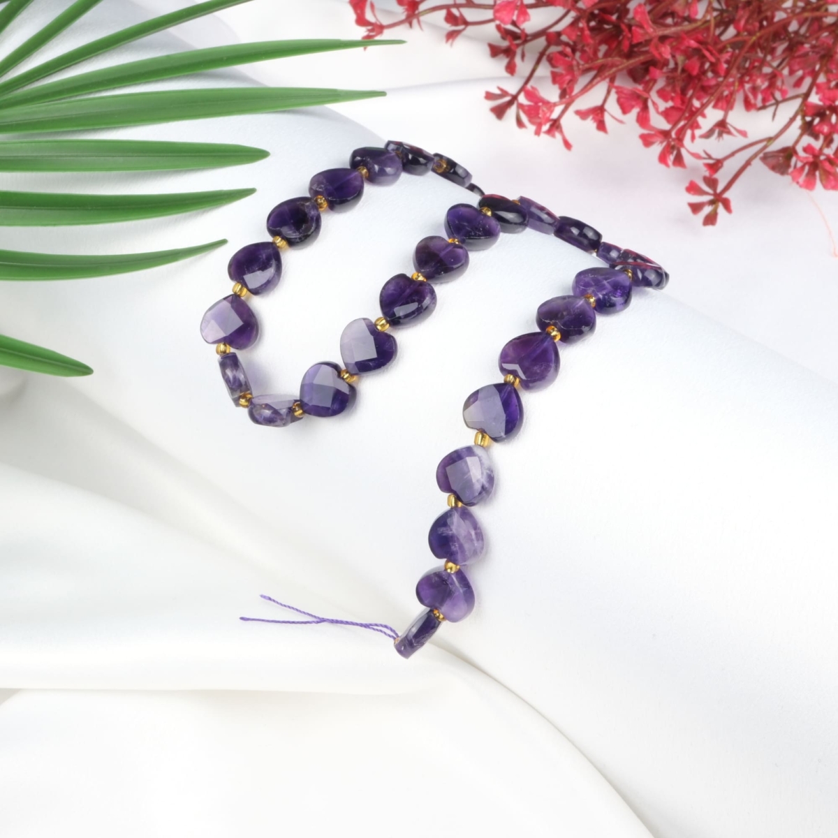 Ametist Doğal Taş Dizi (12mm Kalp Desen Kesim)