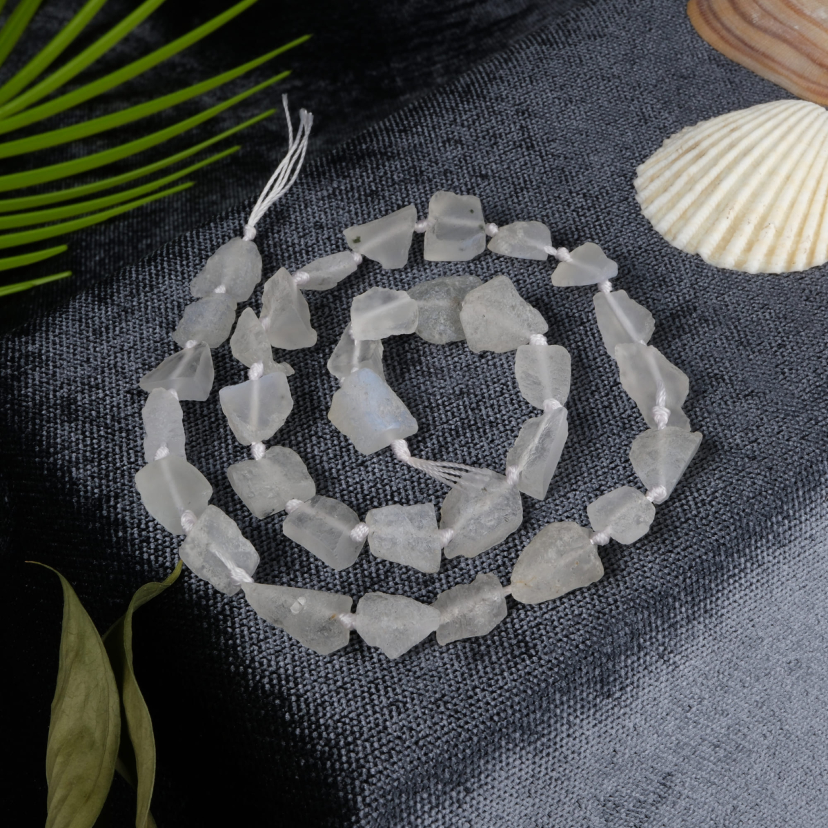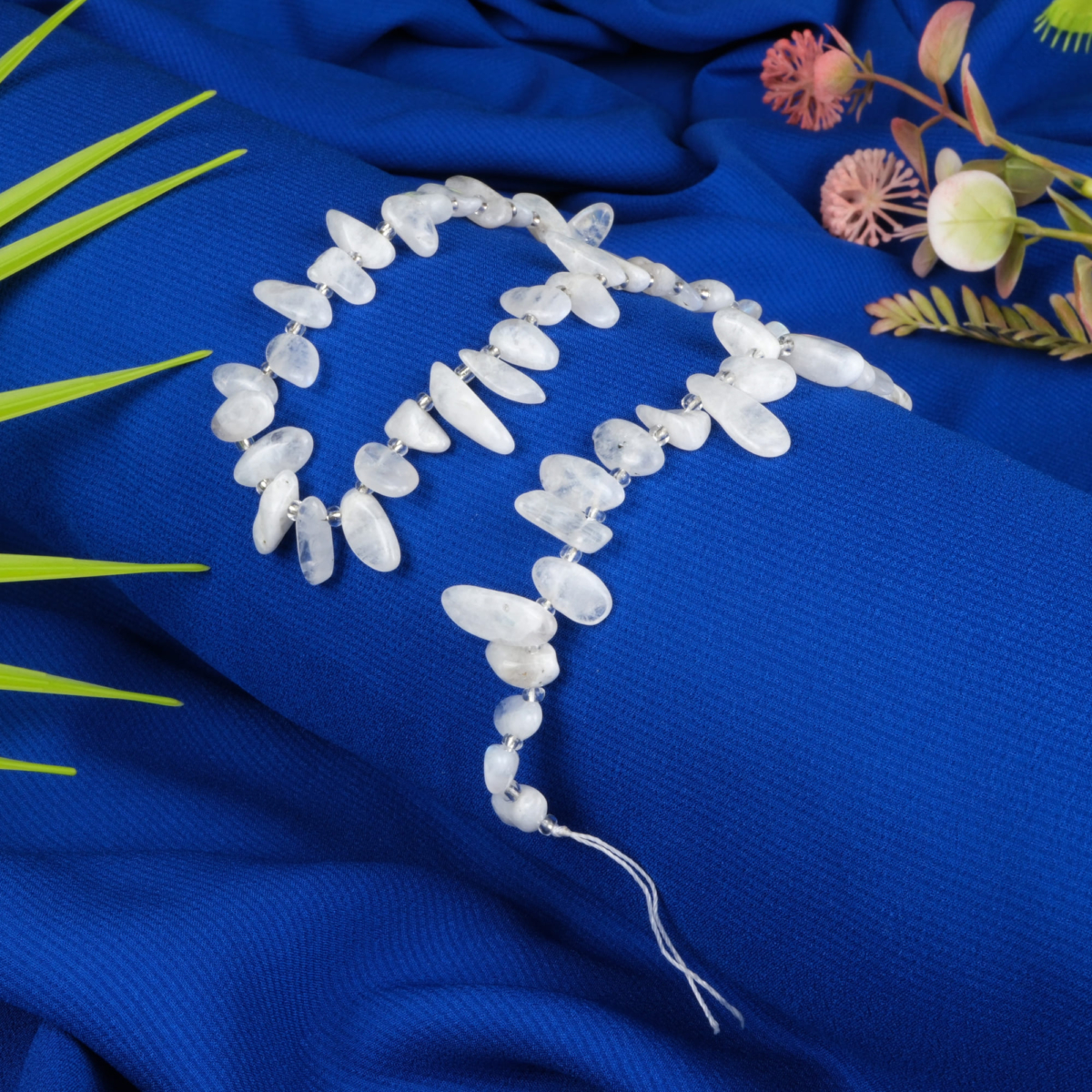 Ay Taşı toptan doğal taş dizi – inci beyazı ve mavi yansımalarıyla sezgiyi güçlendiren, huzur ve denge sağlayan zarif enerji taşı.