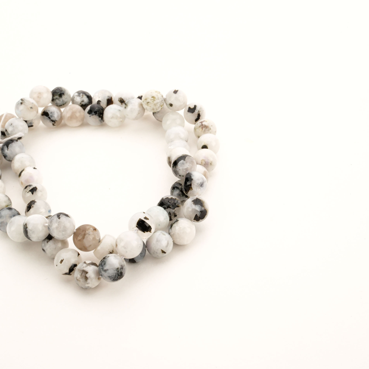 Aytaşı doğal taş dizi 6 mm – sedefli beyaz tonlarıyla sezgi, huzur ve duygusal denge enerjisi sunan toptan doğal taş dizi
