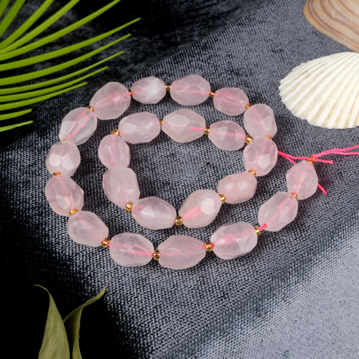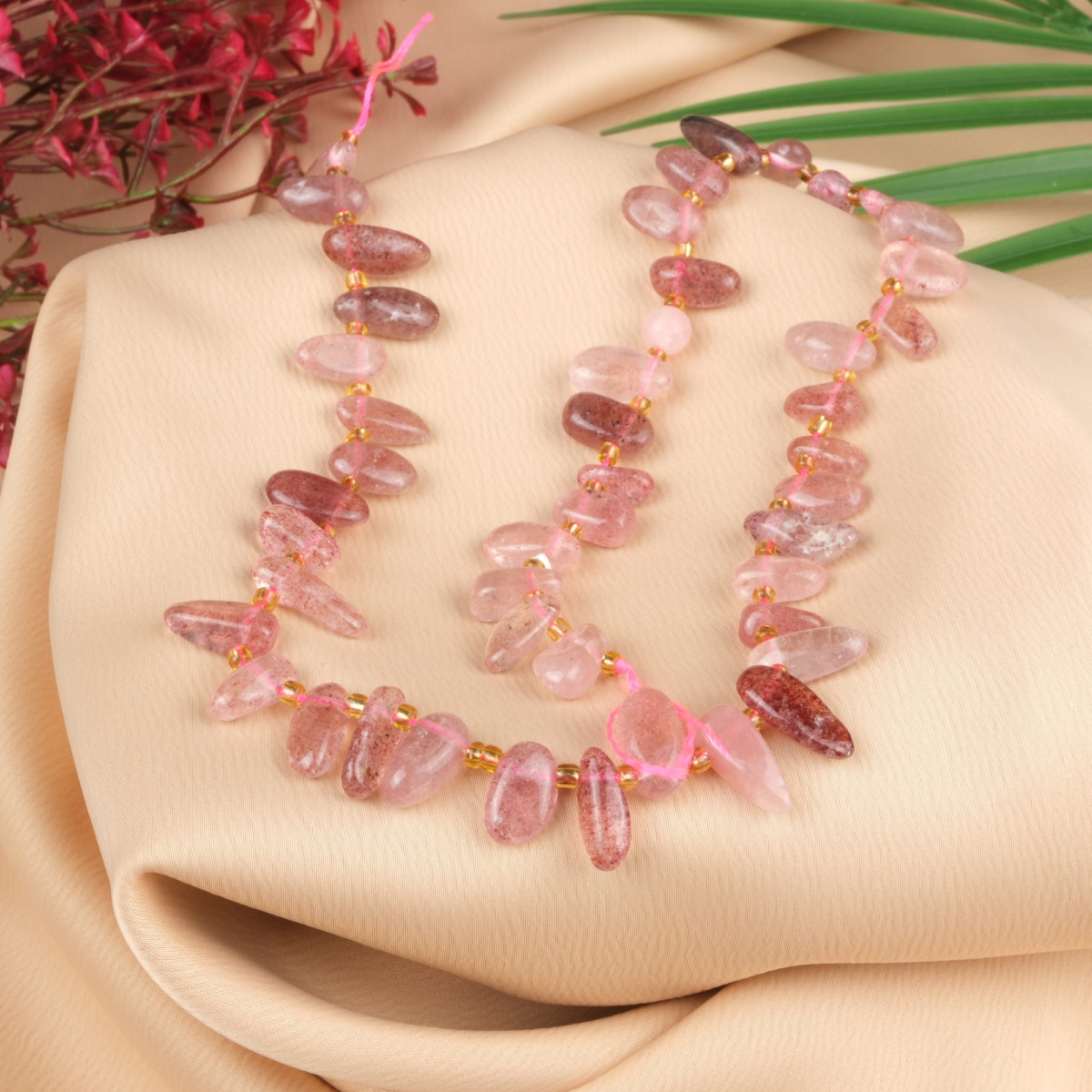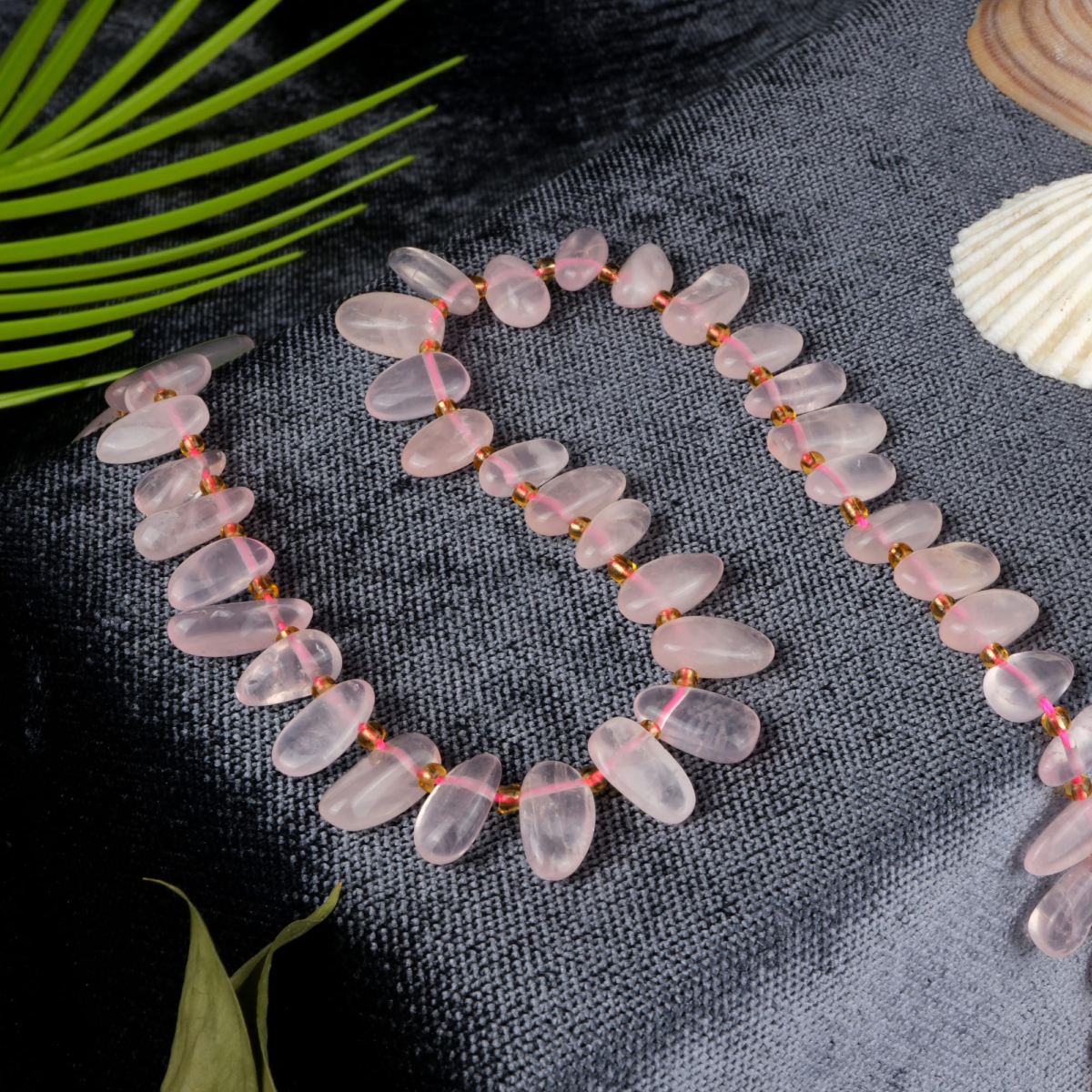 Pembe Kuvars Doğal Taş Kolye Ucu (Yaprak Modeli)