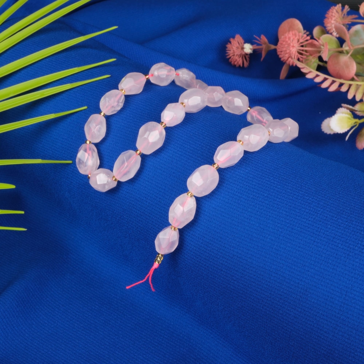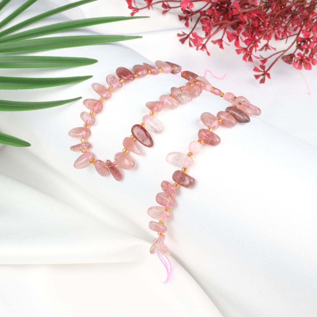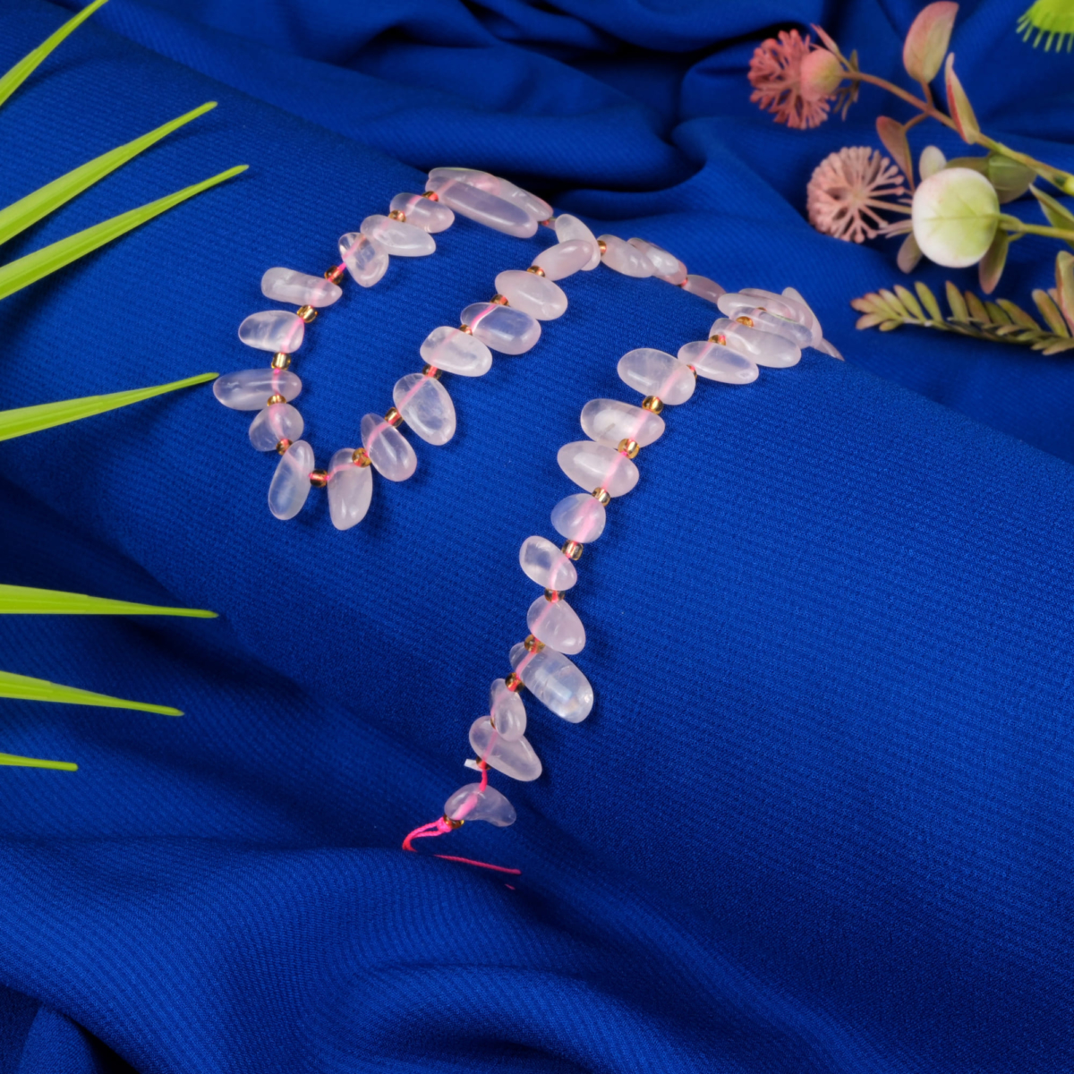 Pembe Kuvars Doğal Taş Kolye Ucu (Yaprak Modeli)
