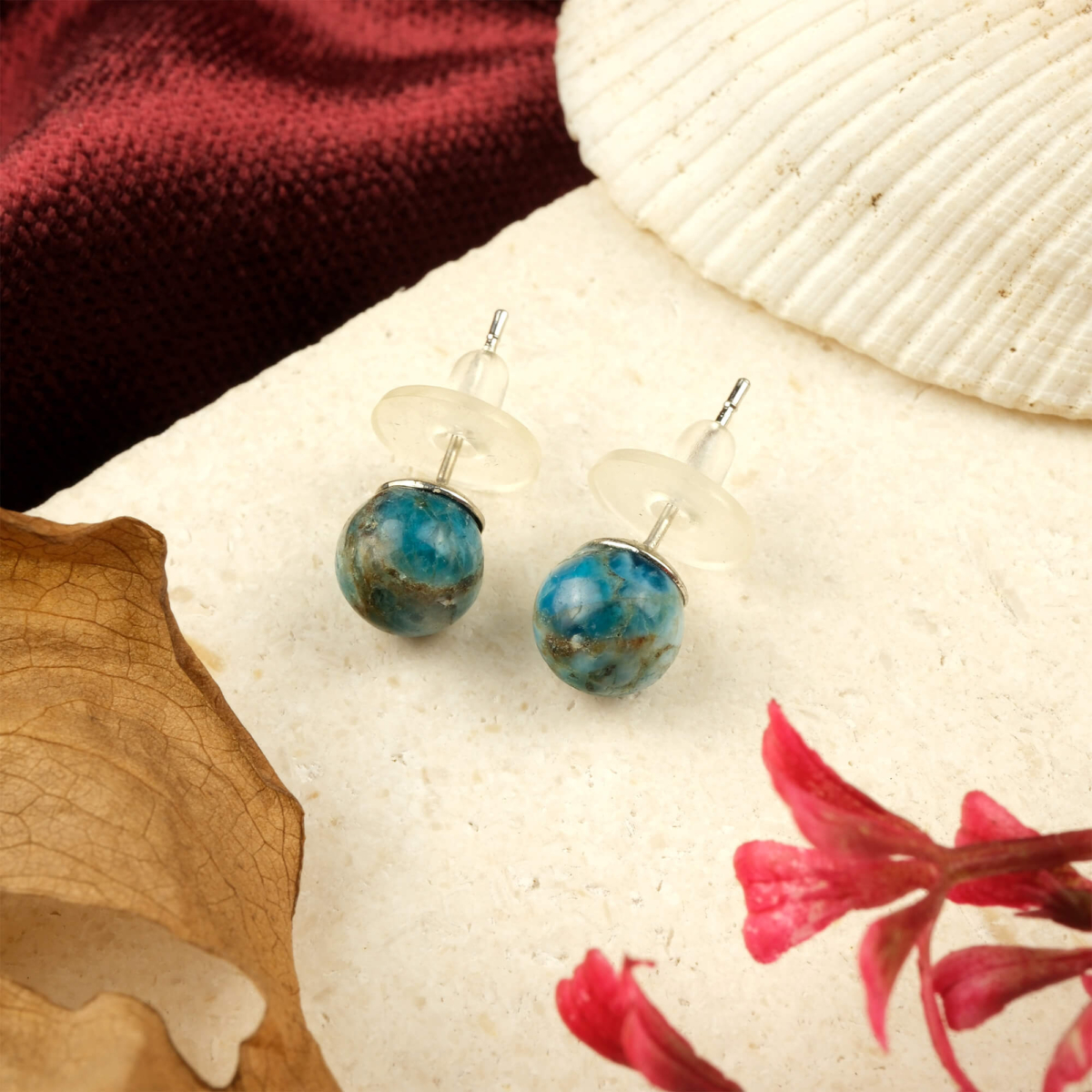 Sıkma turkuaz bakır küpe – canlı mavi tonlarıyla zarafet ve enerji sunan toptan doğal taş küpe.