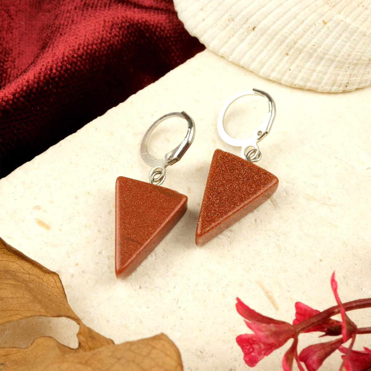 Güneş taşı bakır küpe – canlılık ve pozitif enerji veren parlak tasarımıyla dikkat çeken toptan doğal taş küpe.