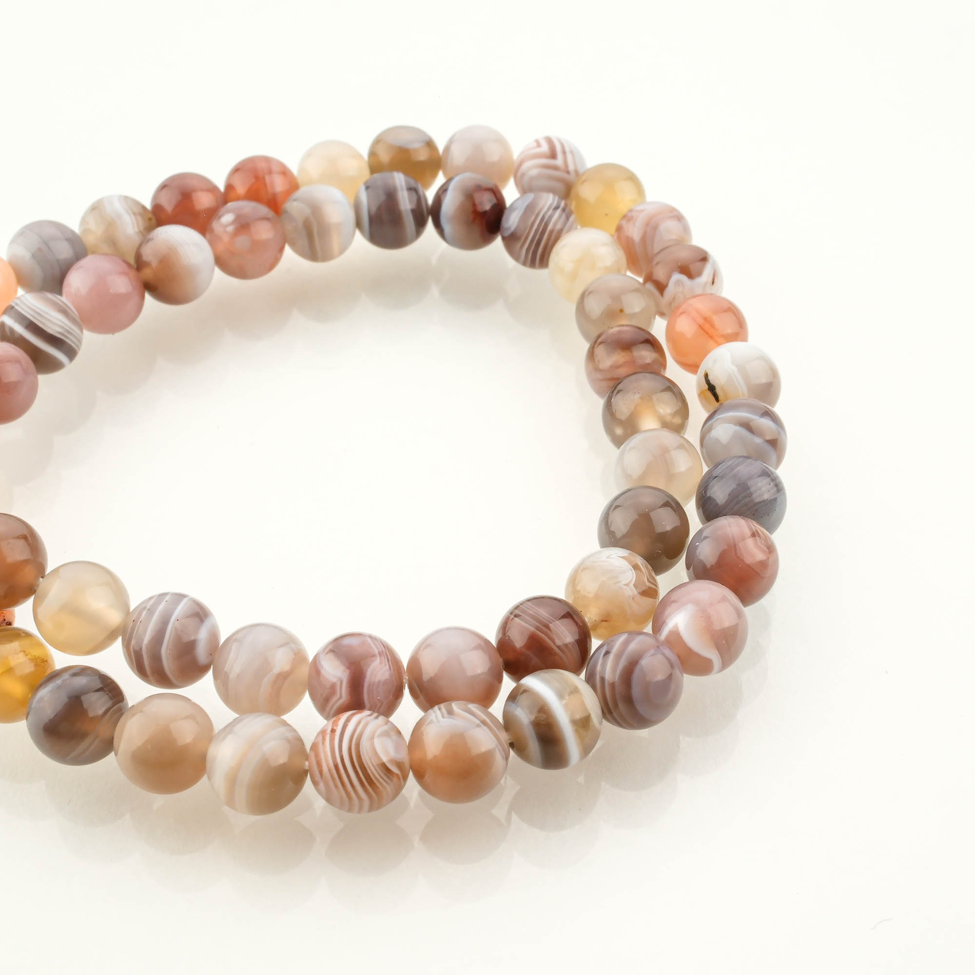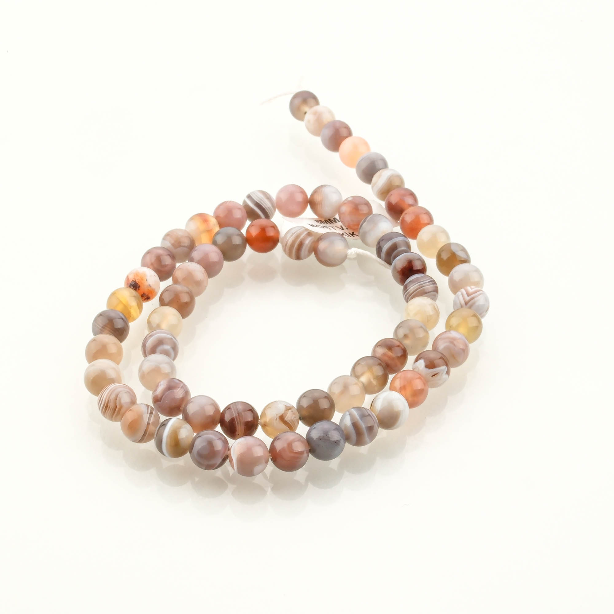 6 mm boyutundaki Bostvana akik taşları; detaylı ve zarif takı tasarımlarında tercih edilir. Özellikle şerit desenli yapısı sayesinde doğal taş severlerin ilgisini çeker.