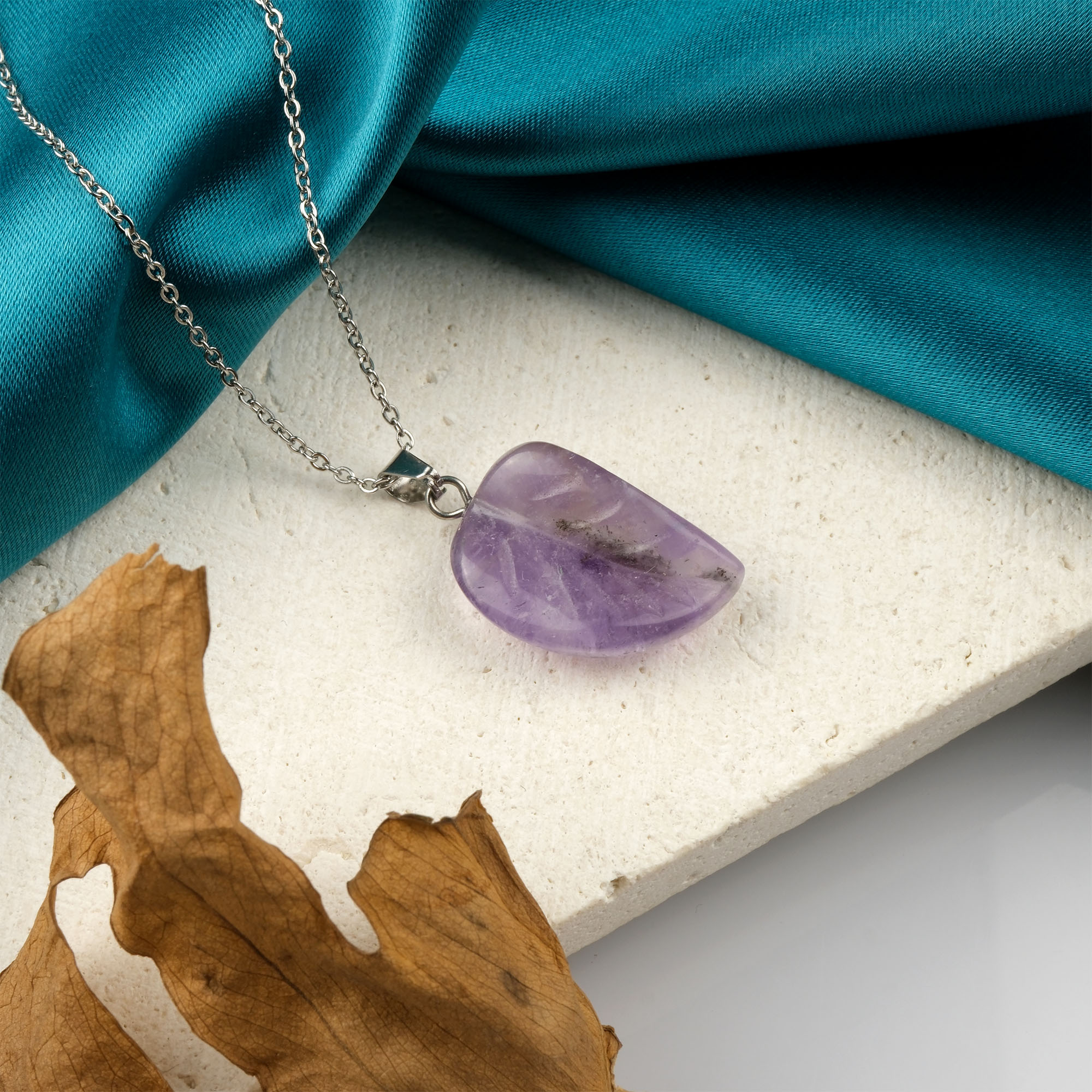 Ametist Doğal Taş Kolye (Yaprak Modeli)