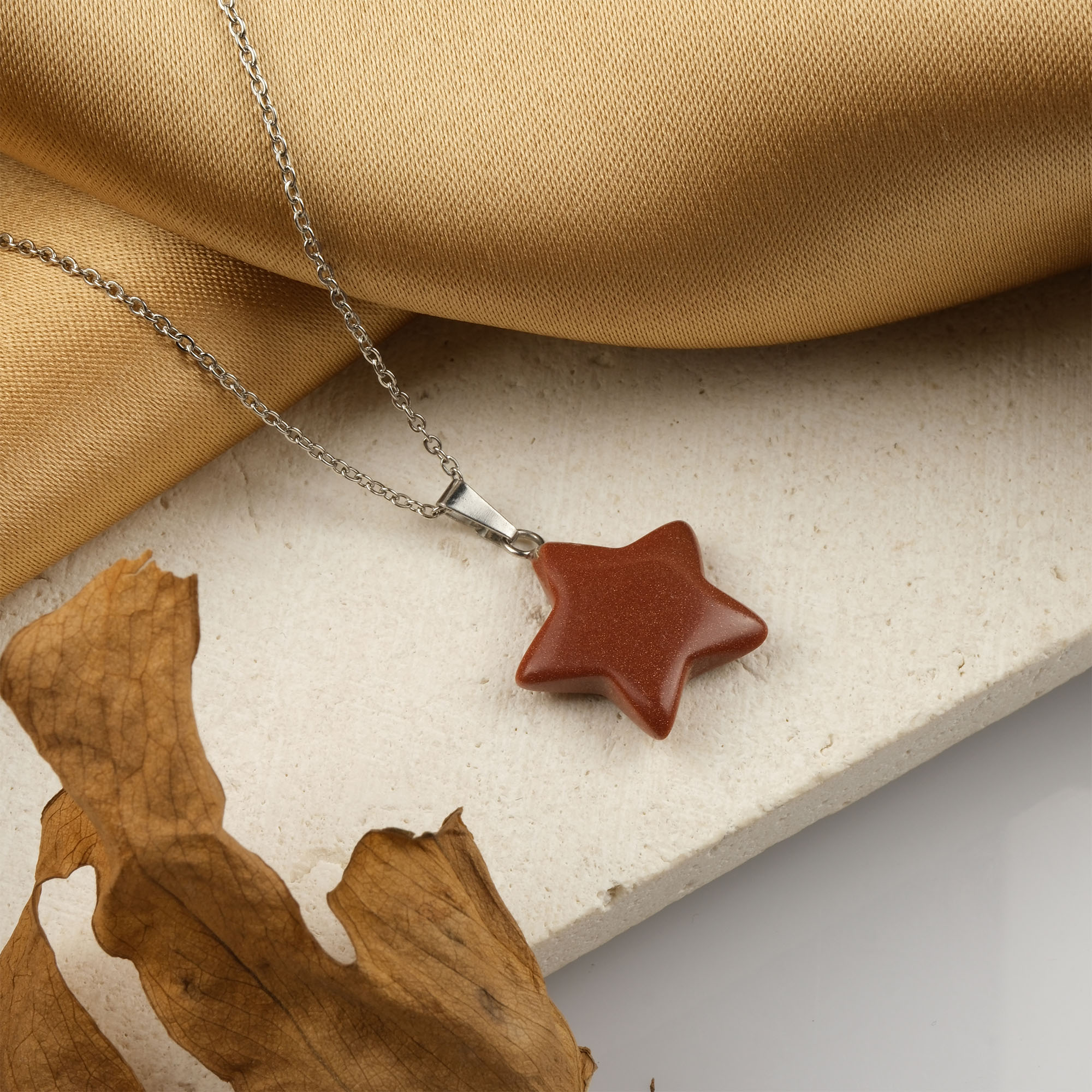Kahverengi Yıldız Taşı Doğal Taş Kolye (Yıldız Modeli)