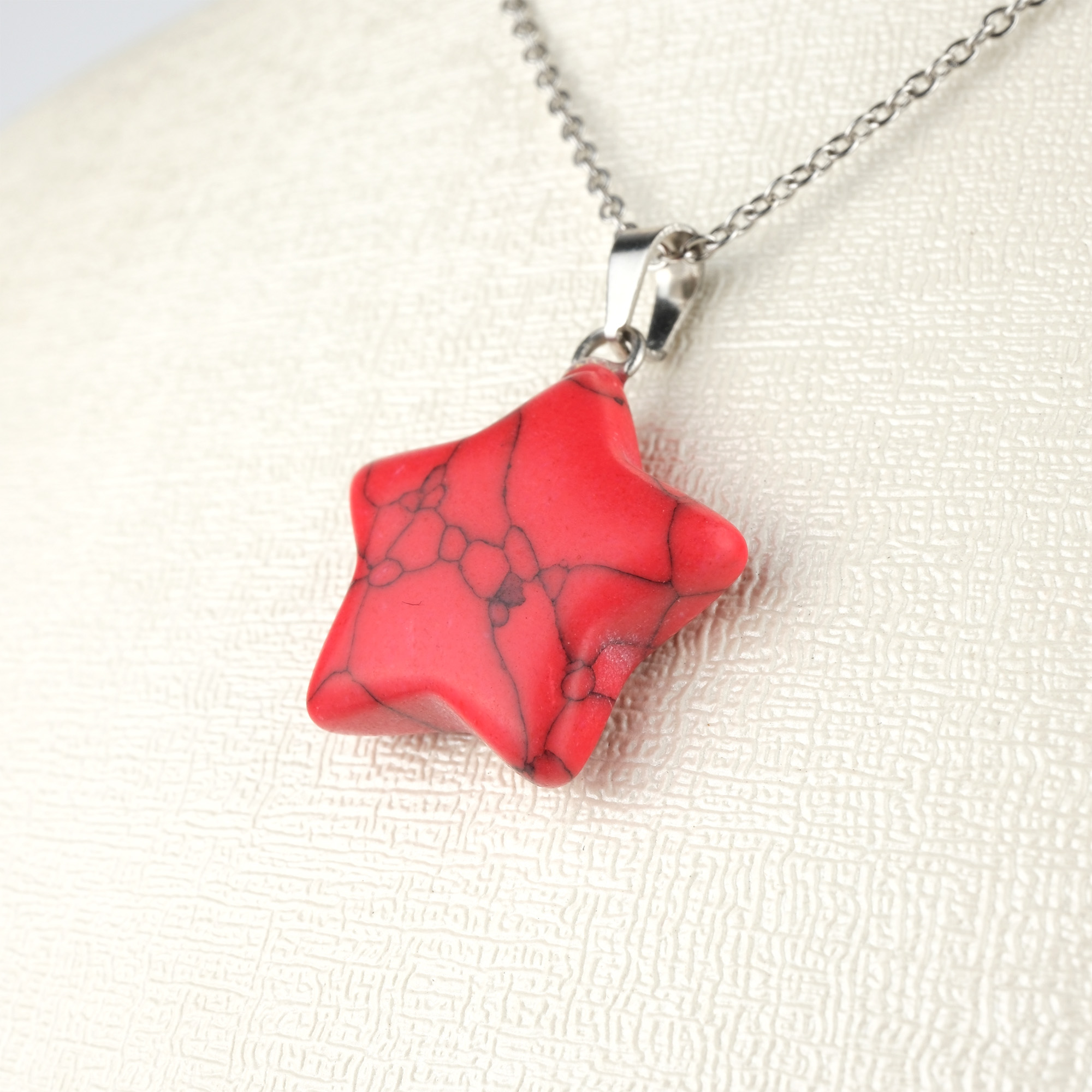 Kırmızı Havlit Doğal Taş Kolye (Yıldız Modeli)