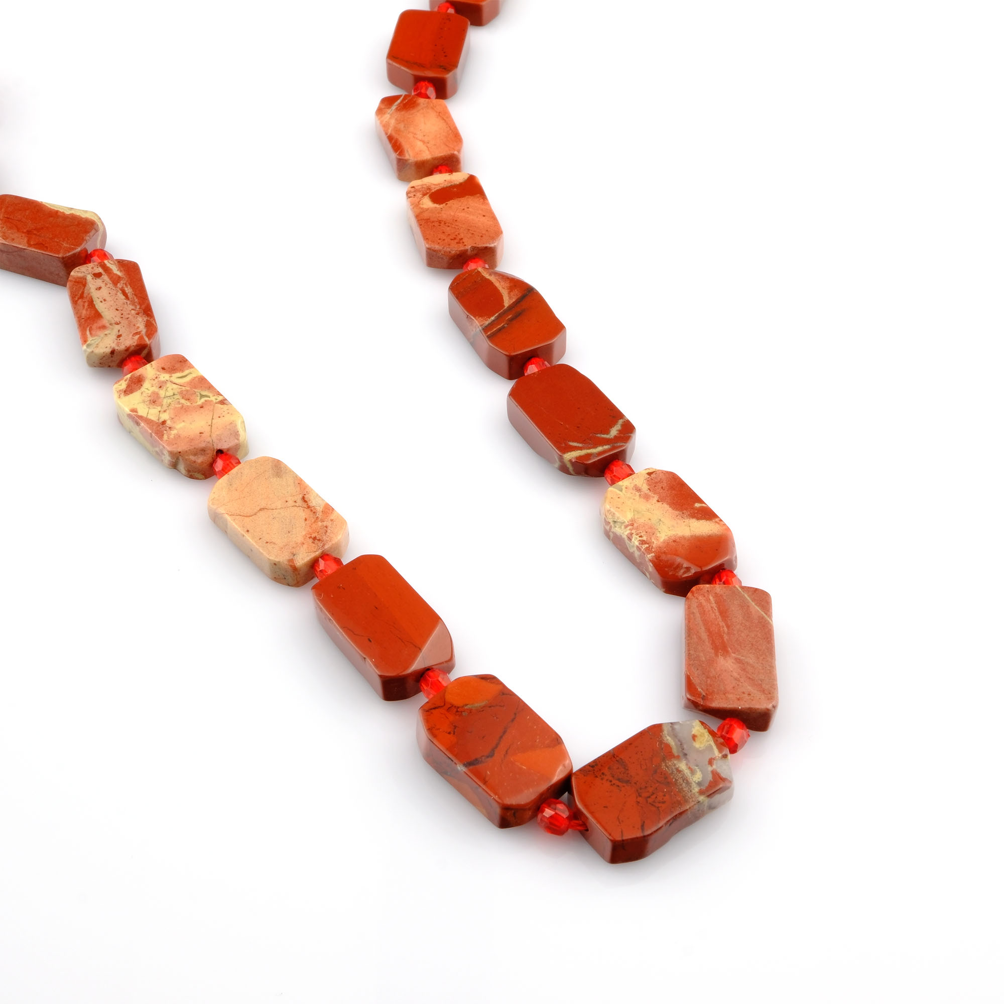 Kırmızı Jasper, demir oksit minerallerinin silis taşlarıyla birleşmesi sonucu milyonlarca yıl süren jeolojik süreçlerde oluşur. Afrika, Brezilya ve Hindistan, taşın en yoğun bulunduğu bölgeler arasındadır. Doğal kırmızı rengi, demir oksit içeriğinden kaynaklanır. Benzer enerjideki Kan Taşı ve Benekli Jasper taşlarıyla birlikte kullanılabilir.