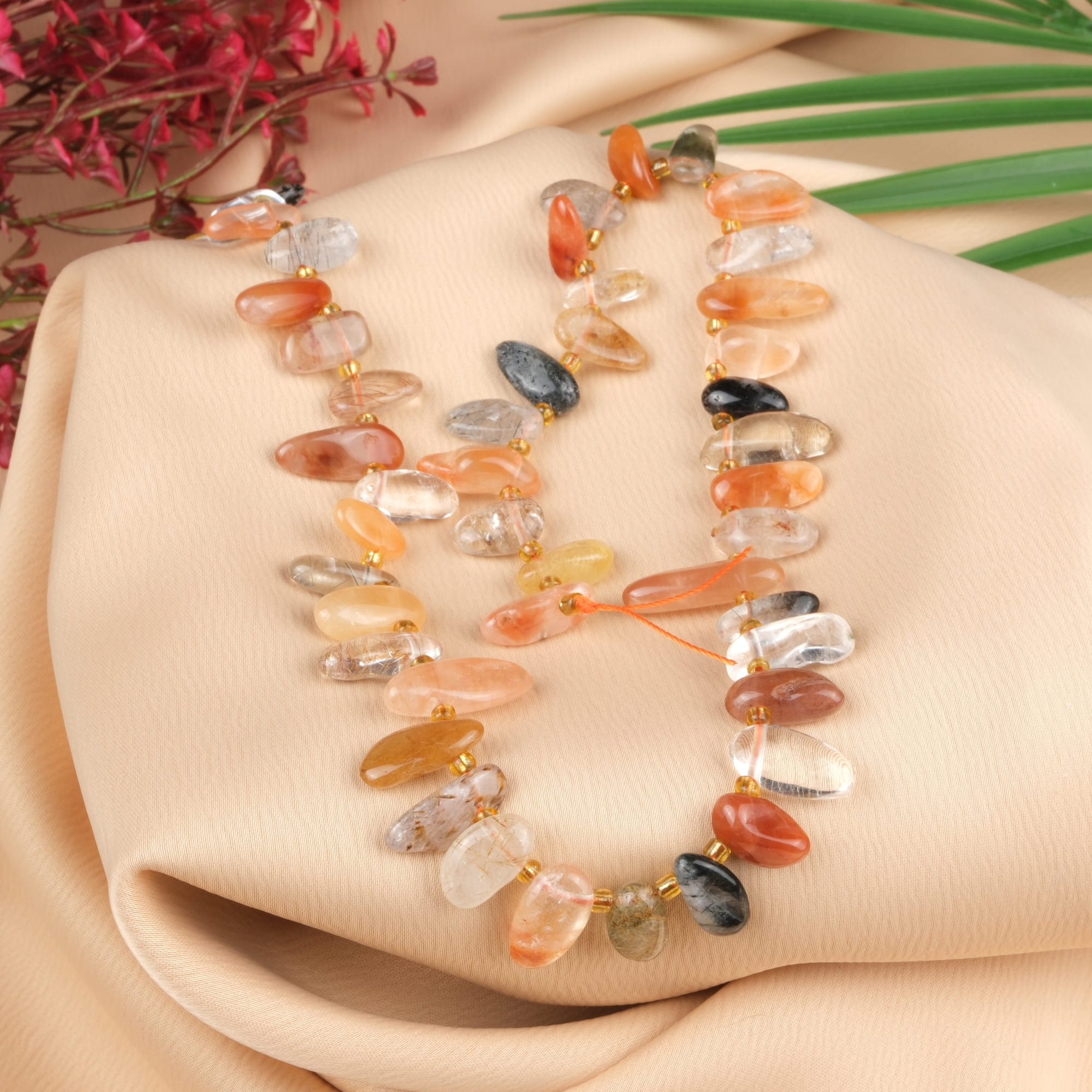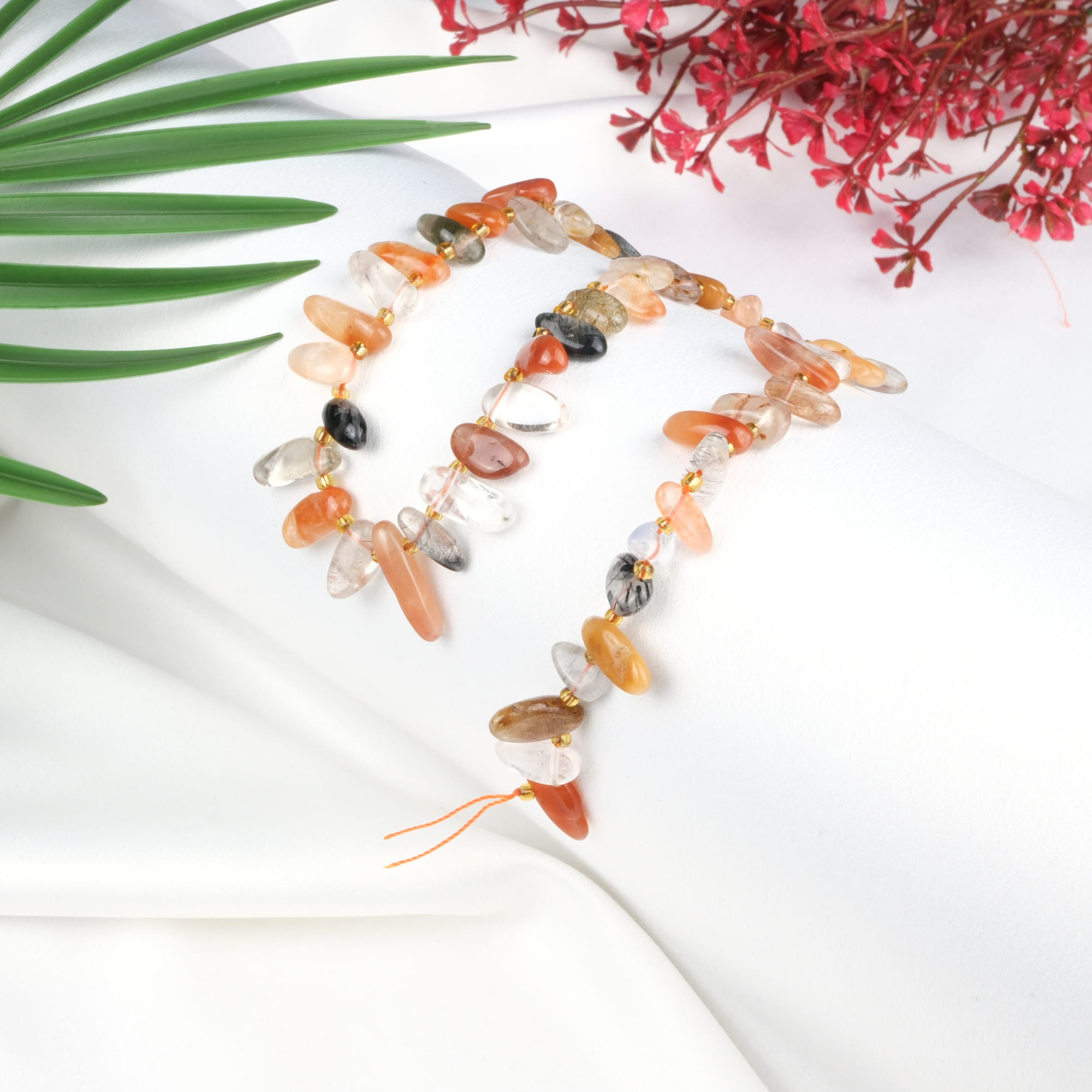 Kırmızı Rutil Kuvars Doğal Taş Arası Boncuklu Çubuk Dizi