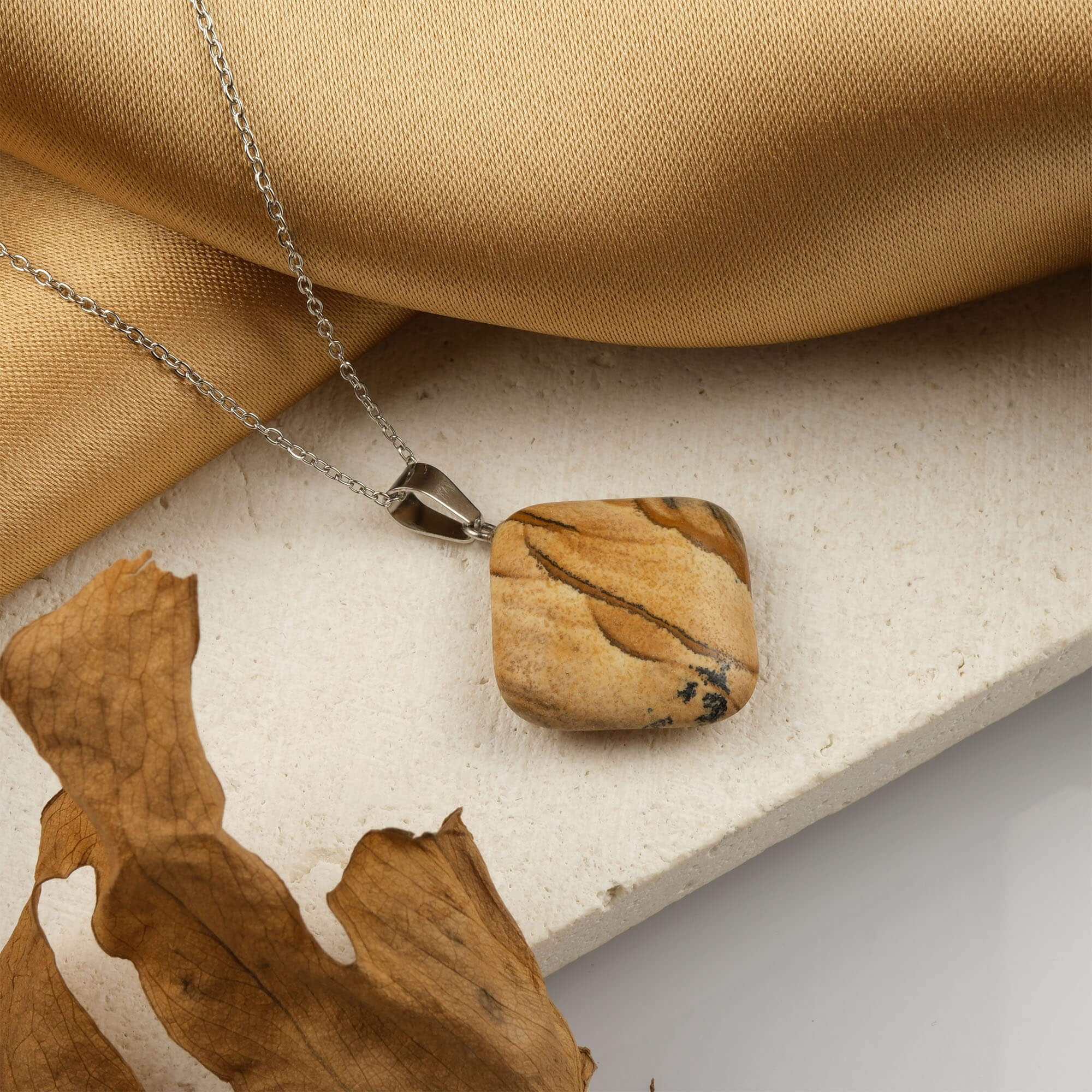 Odun Jasper Doğal Taş Kolye (Kare Modeli)
