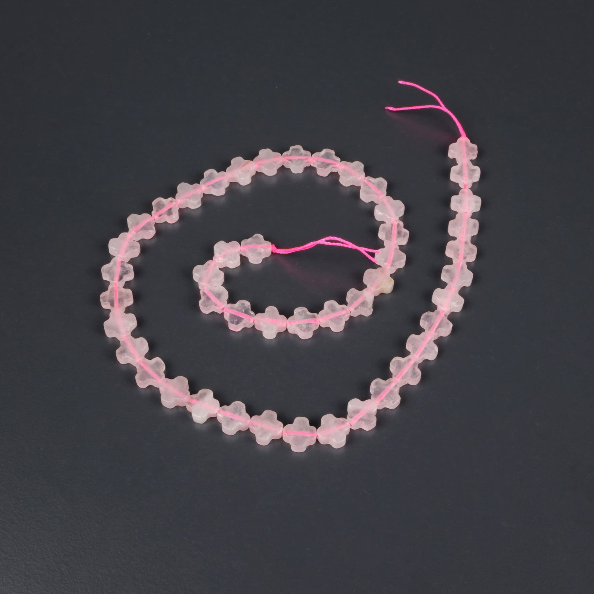 Pembe Kuvars Doğal Taş Dizi (8mm Yassı Yonca Kesim)