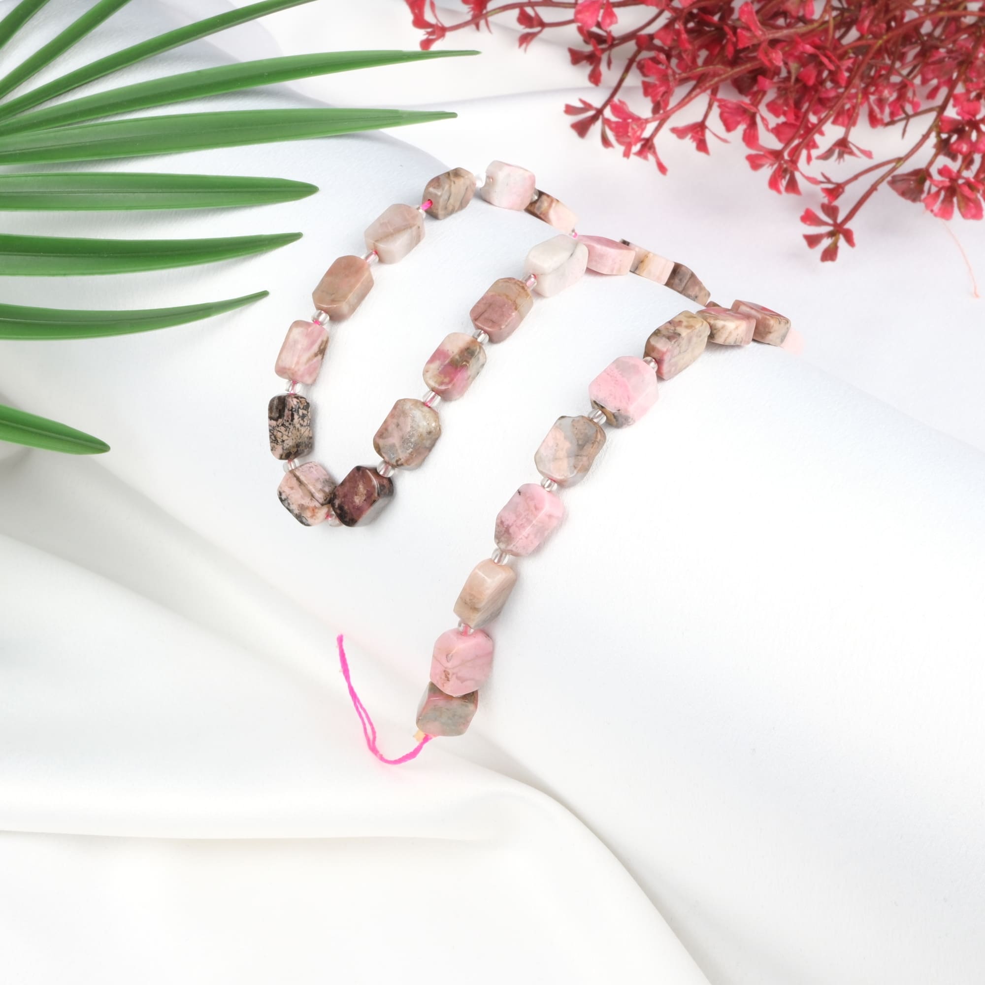 Rodonit taşı, pembe ve siyah desenlerin birleşimiyle dikkat çeken, kuvars grubuna yakın bir mineraldir. 8x12mm arası dizi formu, zarif takı tasarımlarında şıklık ve enerji sunar.
