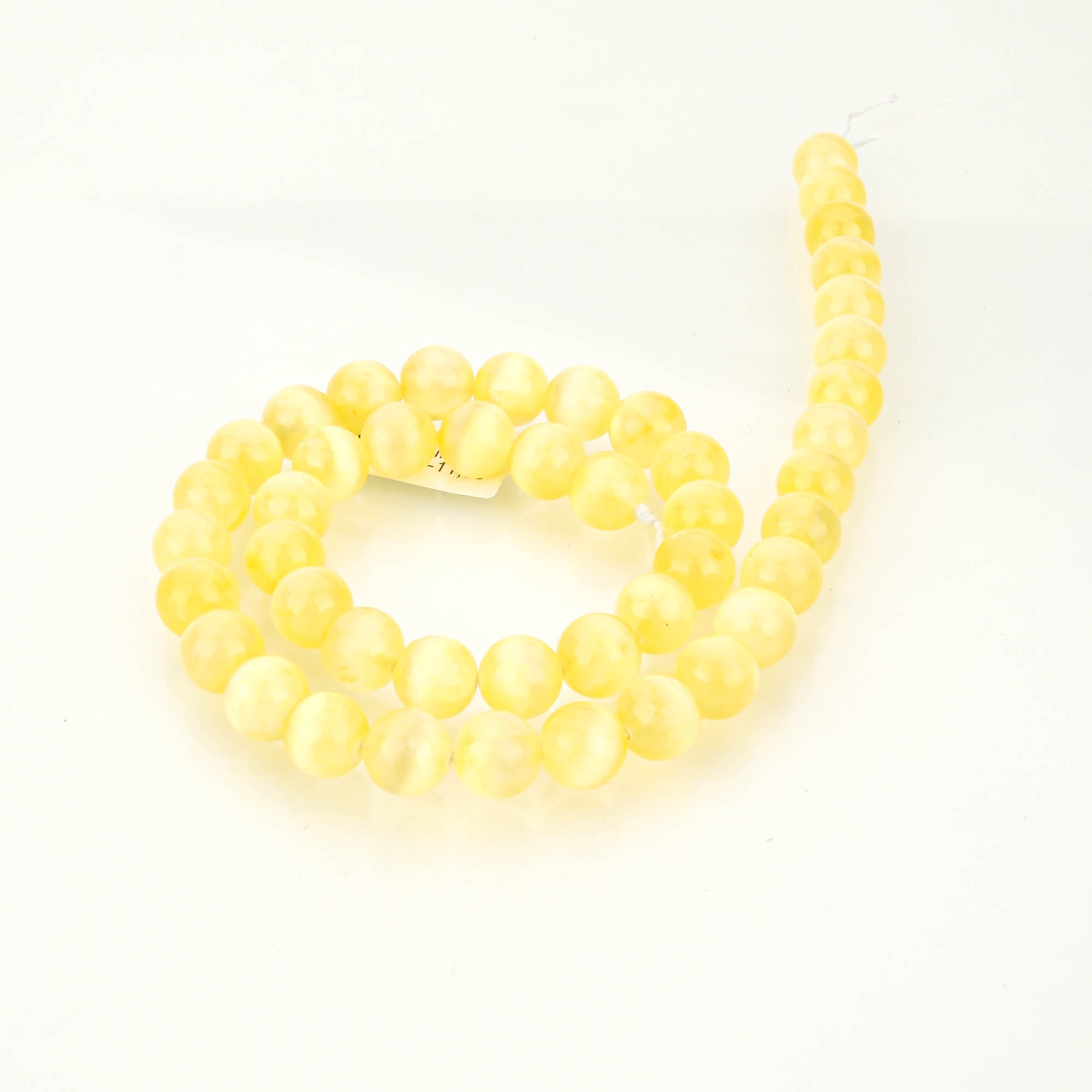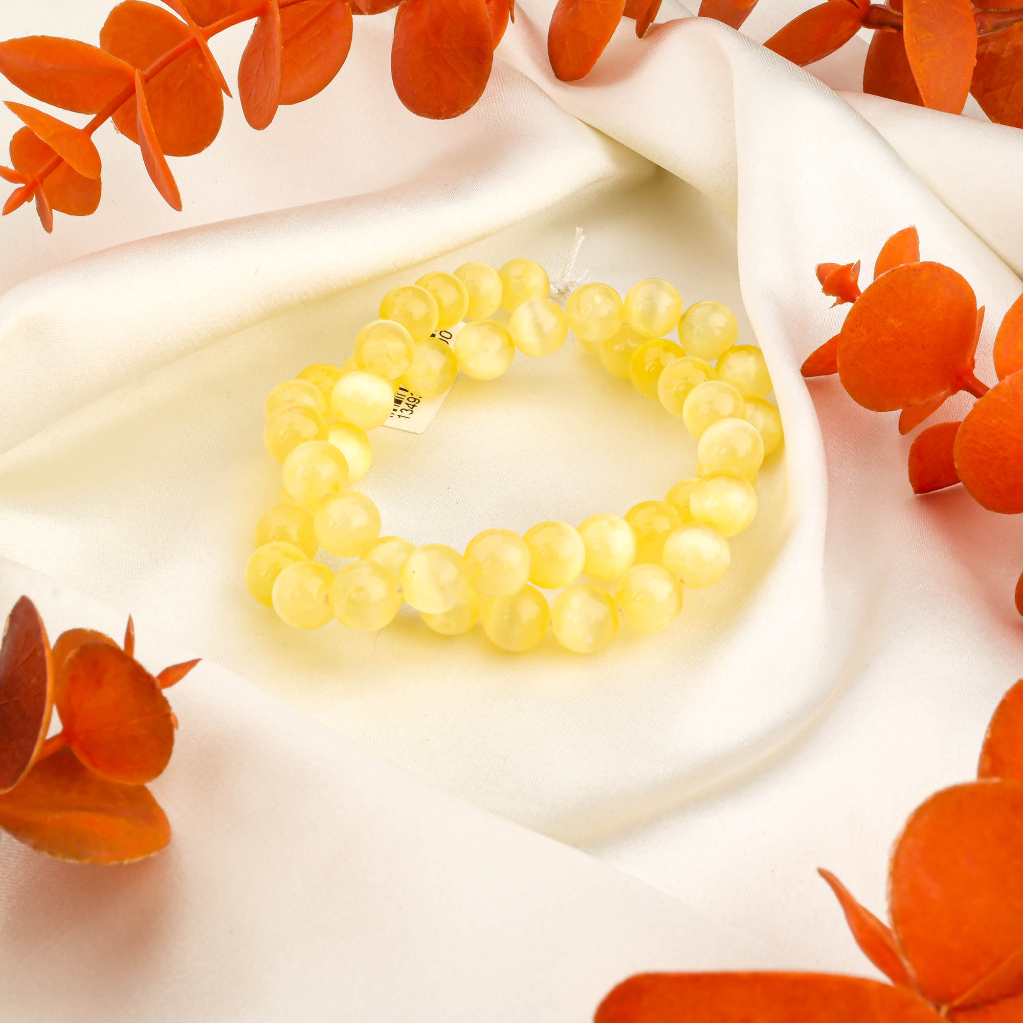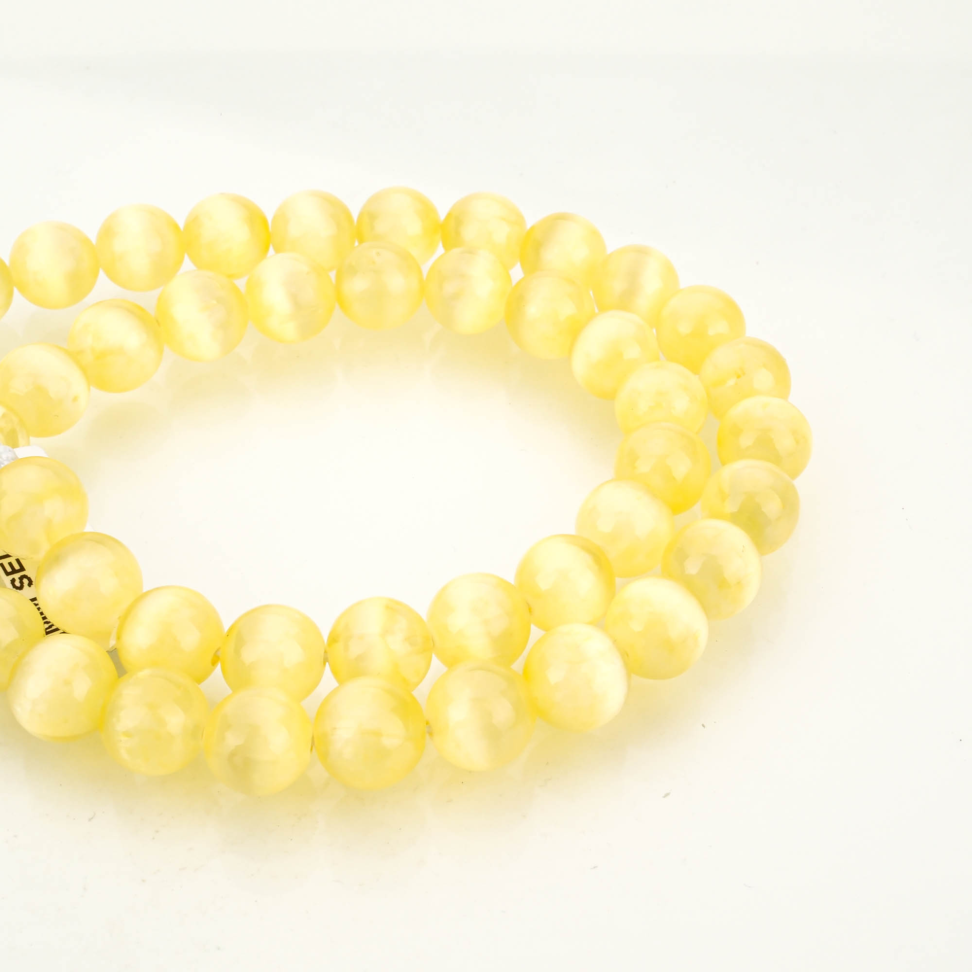 Her biri 8 mm ölçüsünde olan Sarı Selenit taşları, homojen şekilde dizilmiş, düzgün delikli ve işlenmeye hazırdır. Hem butik üretimlerde hem de büyük hacimli seri üretim süreçlerinde rahatlıkla kullanılabilir.