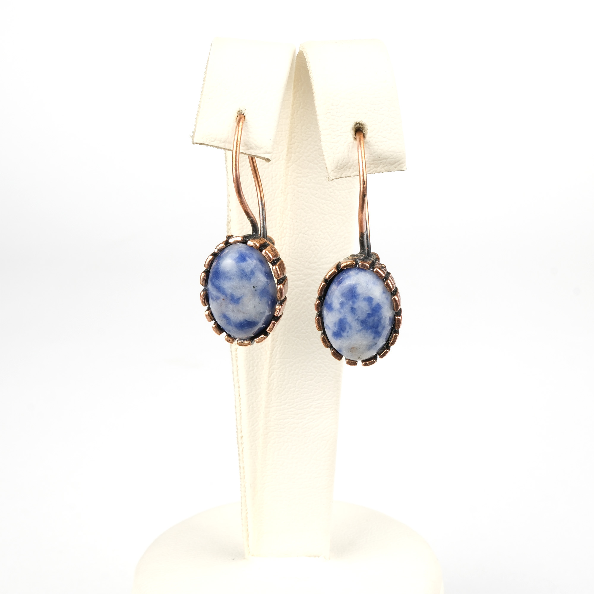 Sodalit Taşı Bakır Doğal Taş Küpe ( Sallantılı Model )