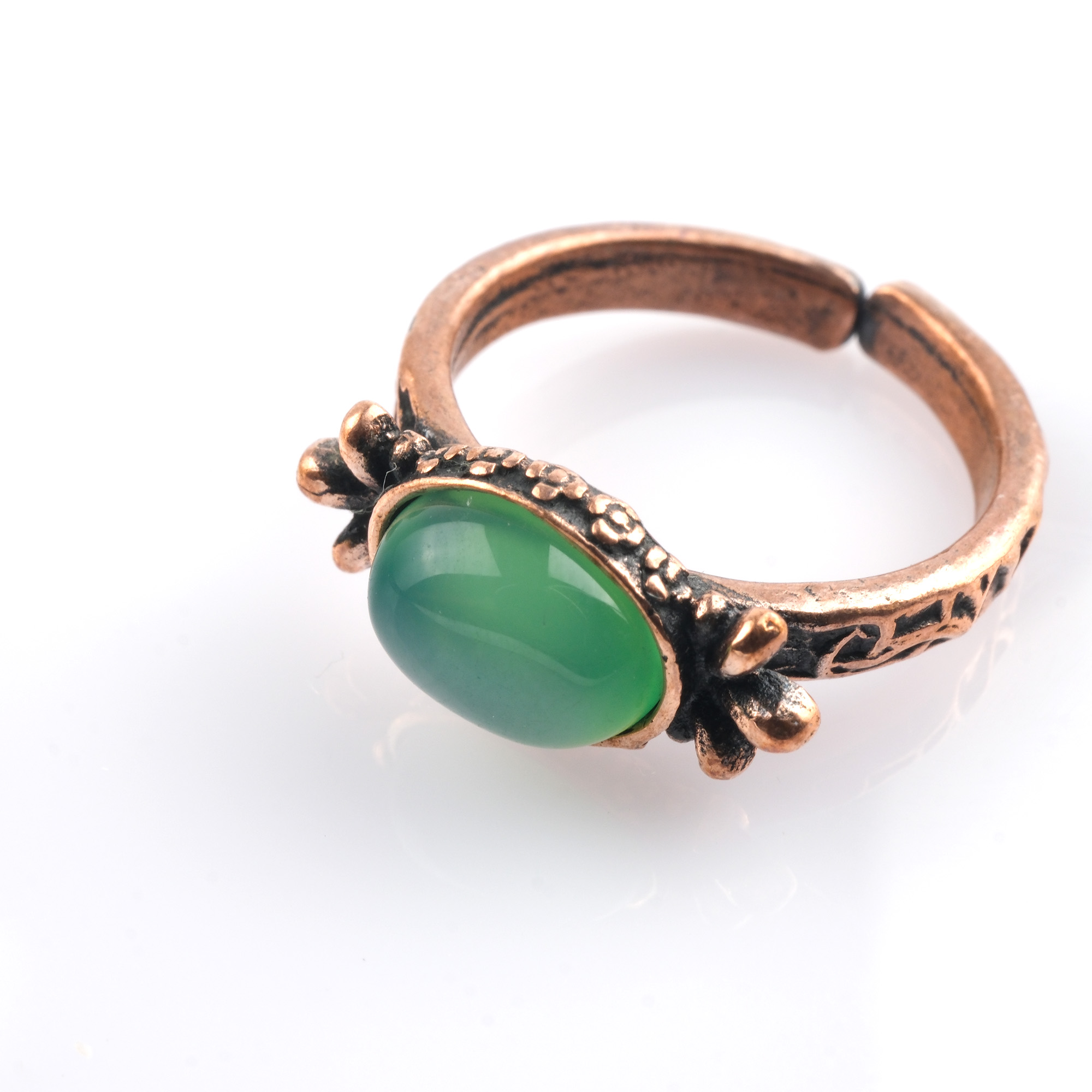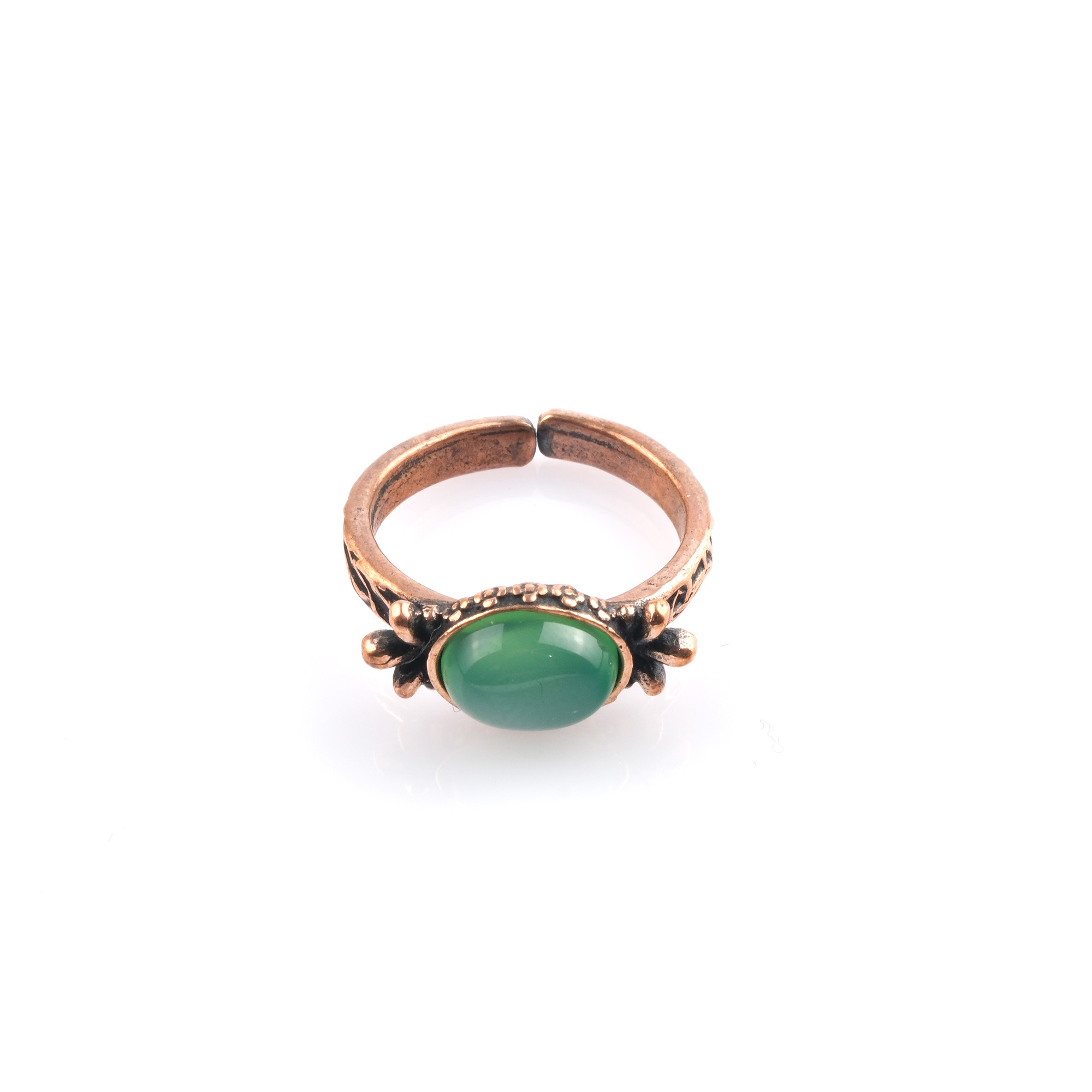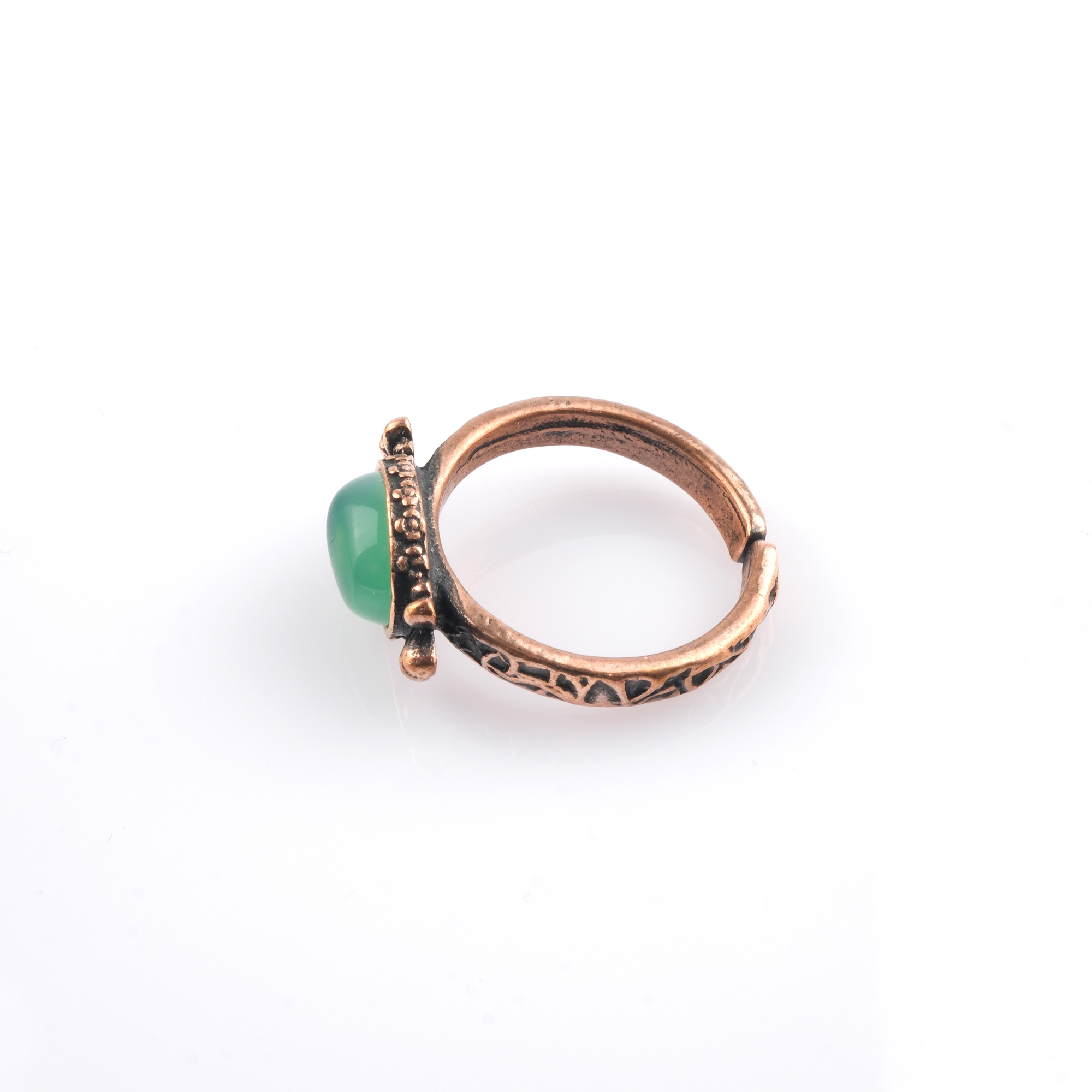 Yeşil Akik Doğal Taş Bakır Yüzük